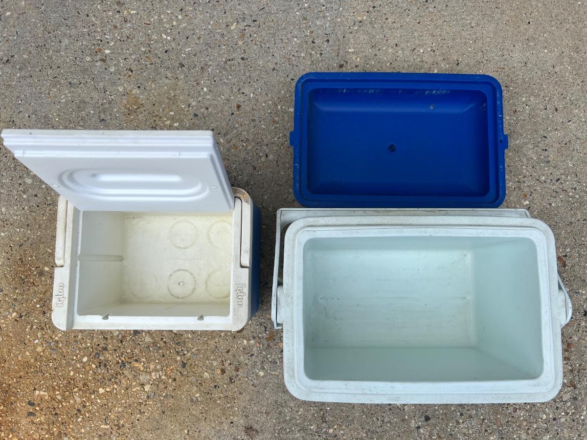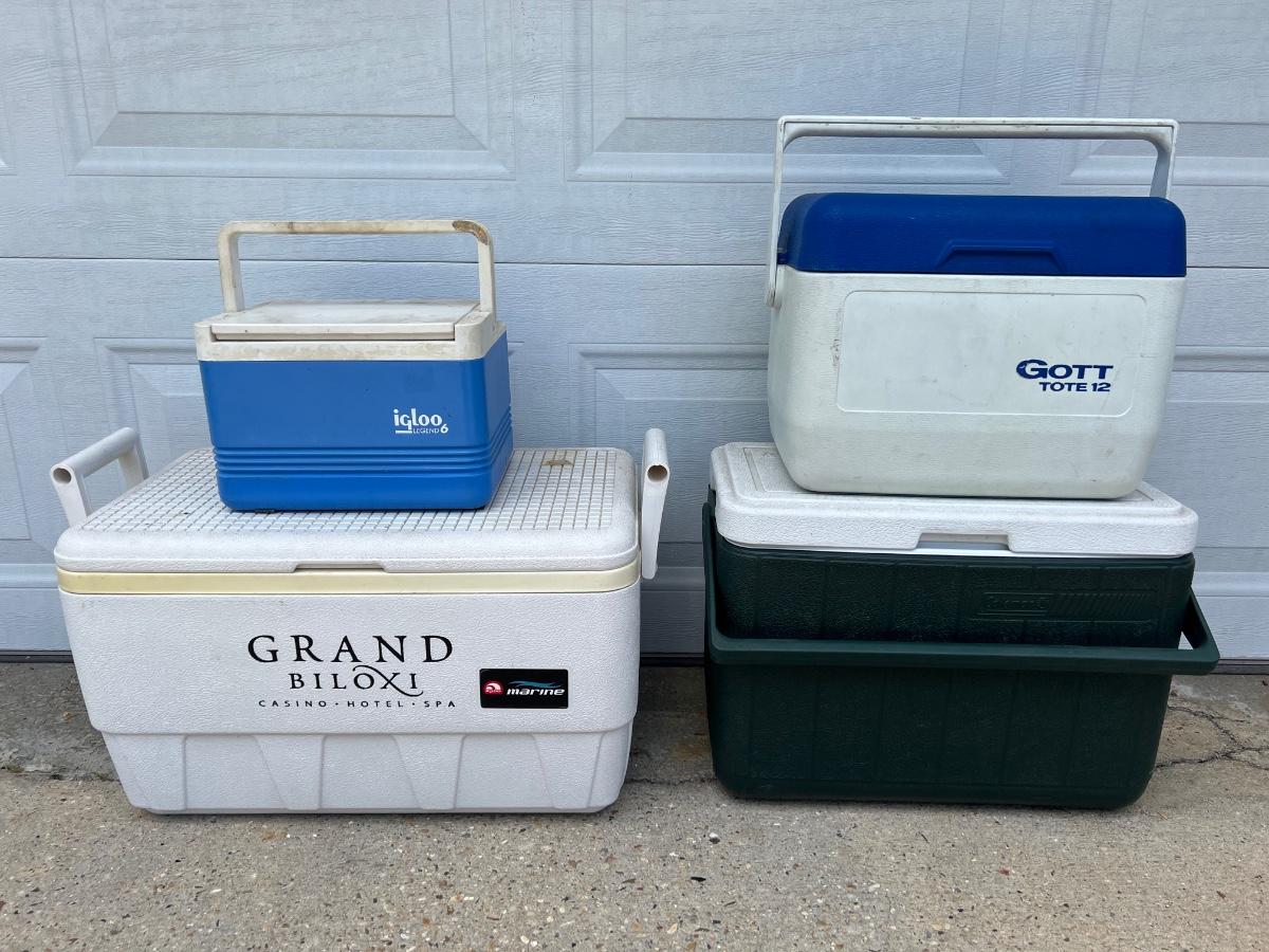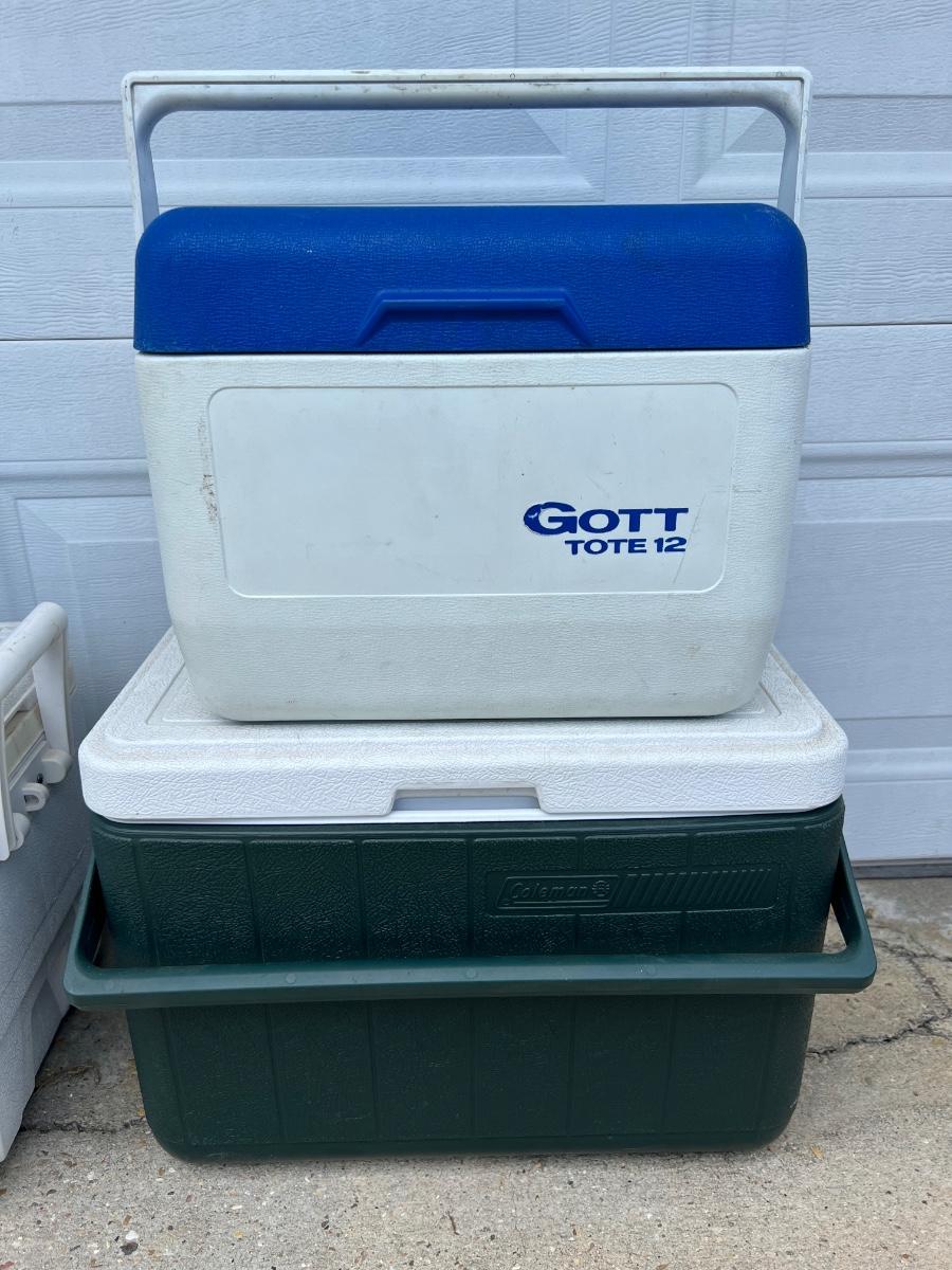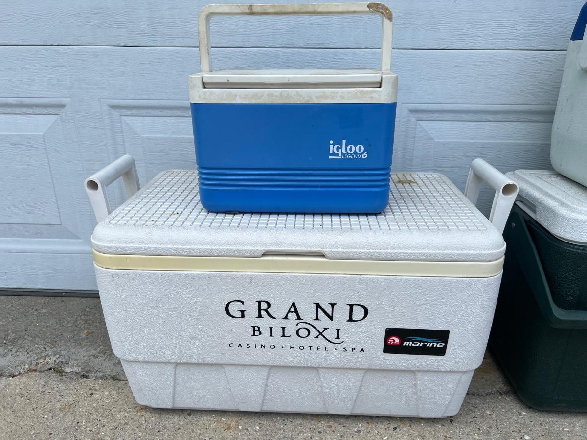 All in used condition. All hinges work and there are no cracks in the plastic. All 4 ice chests pictured are included.