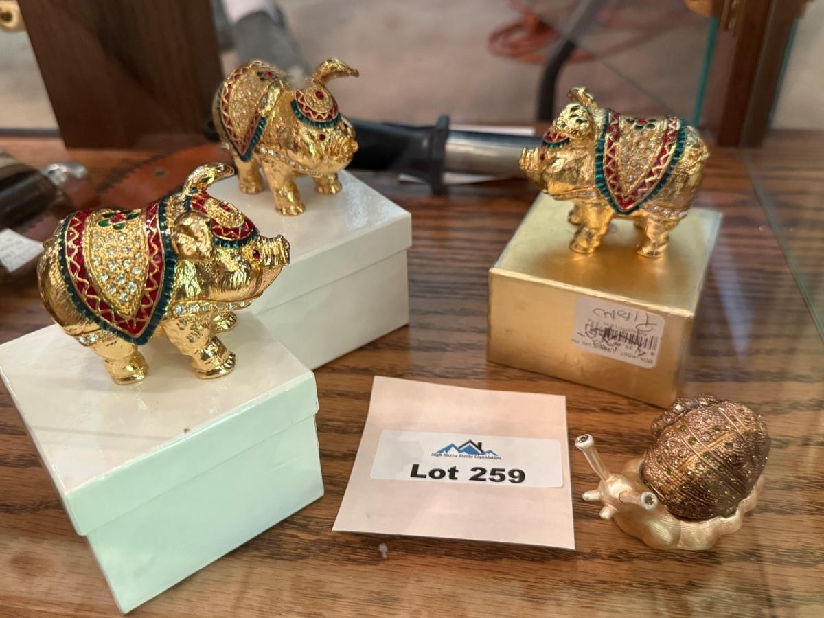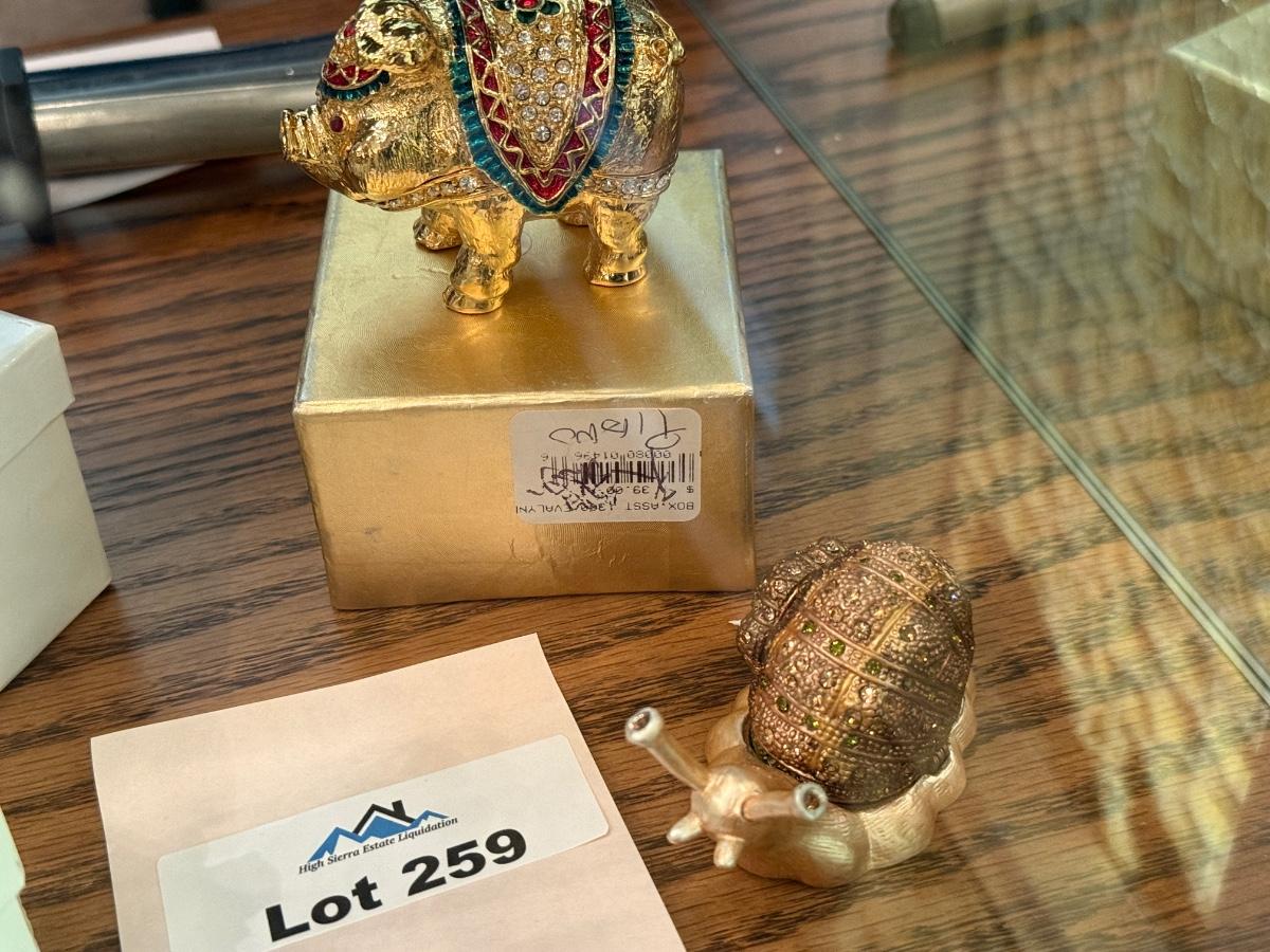 Set of 4 Jeweled Pigs/Snail themed New Trinket boxes