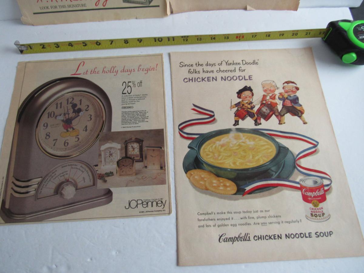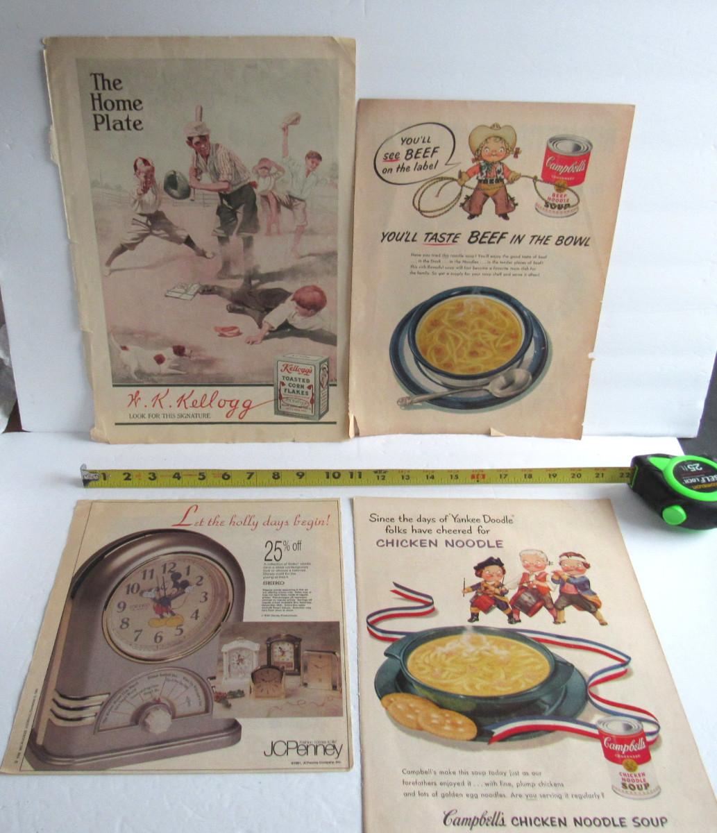 Lot of 4 Large Vintage Magazine Ads For Kelloggs, Campbells, JC Penny