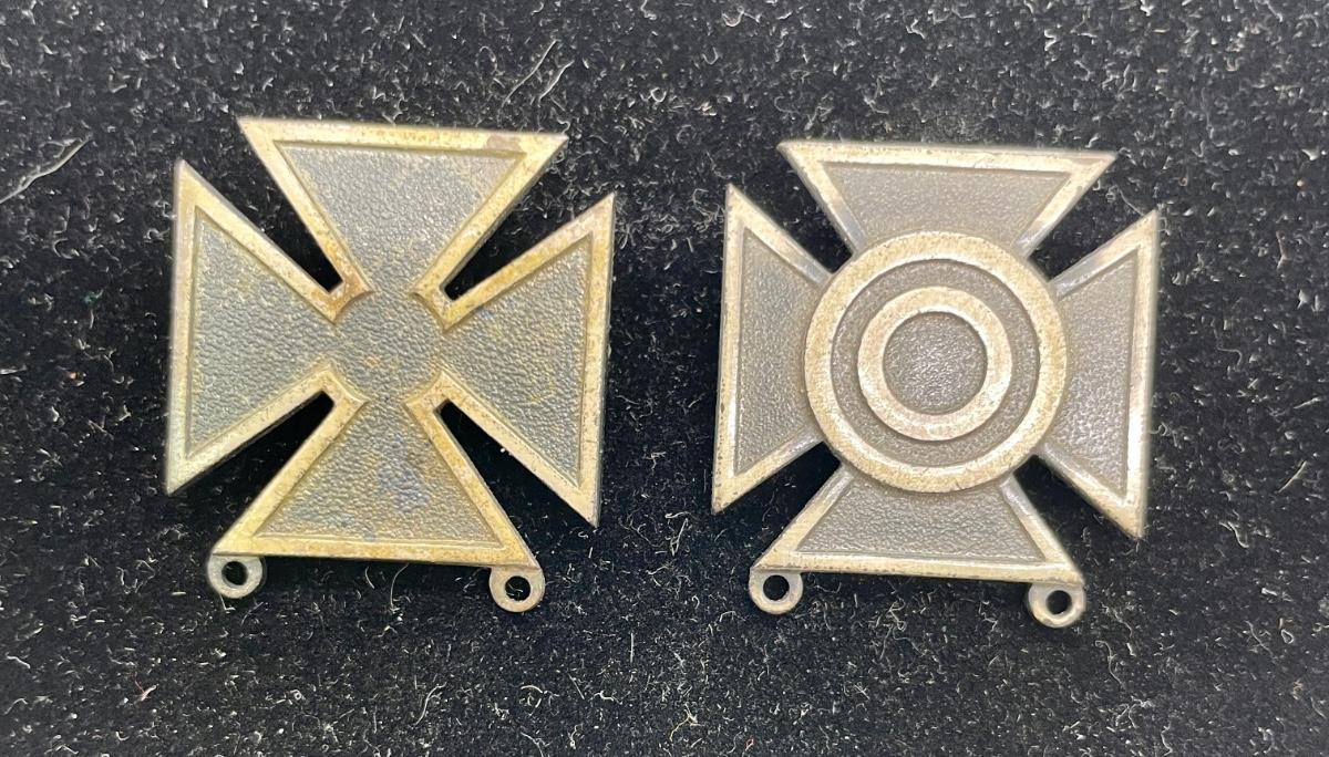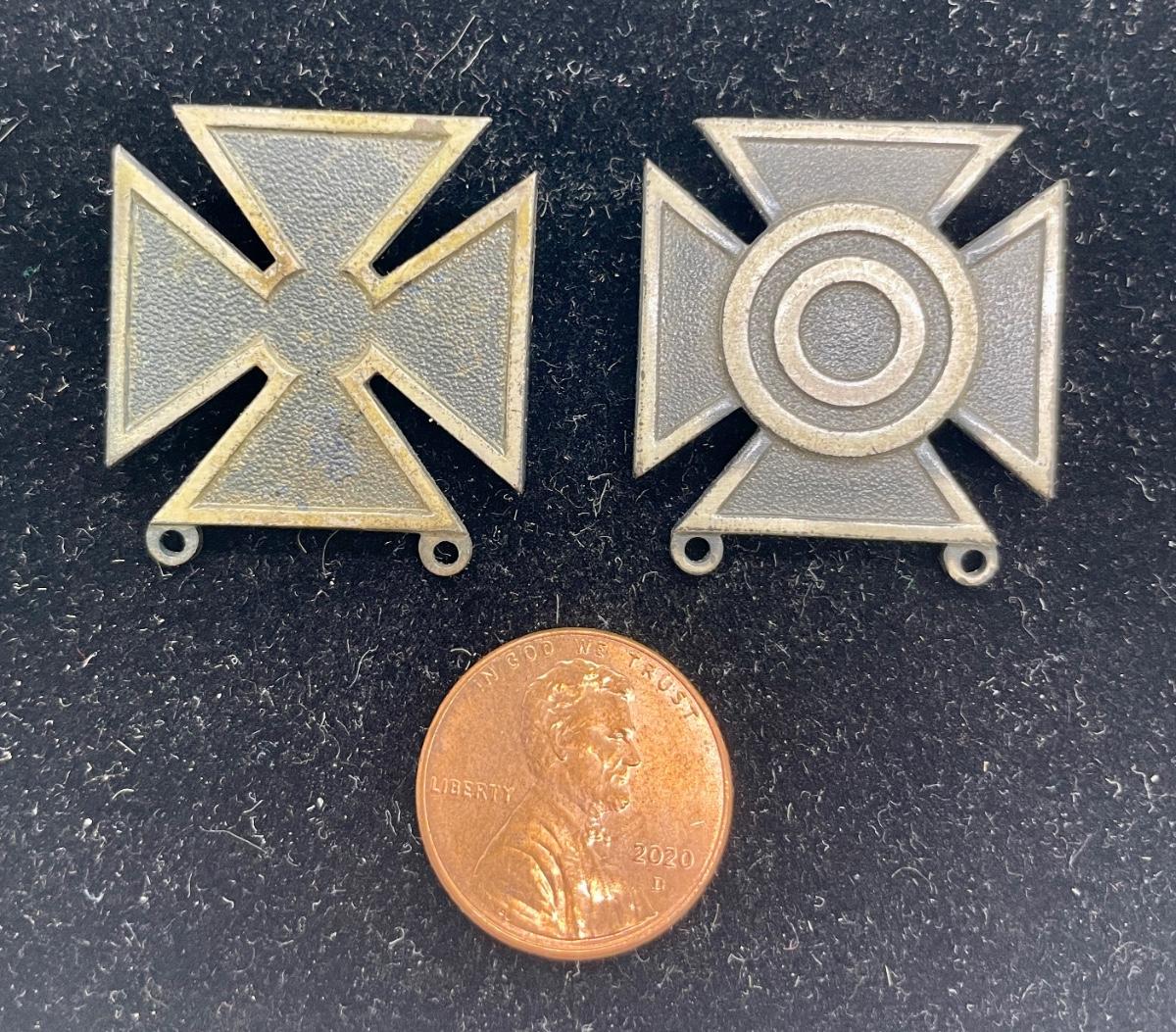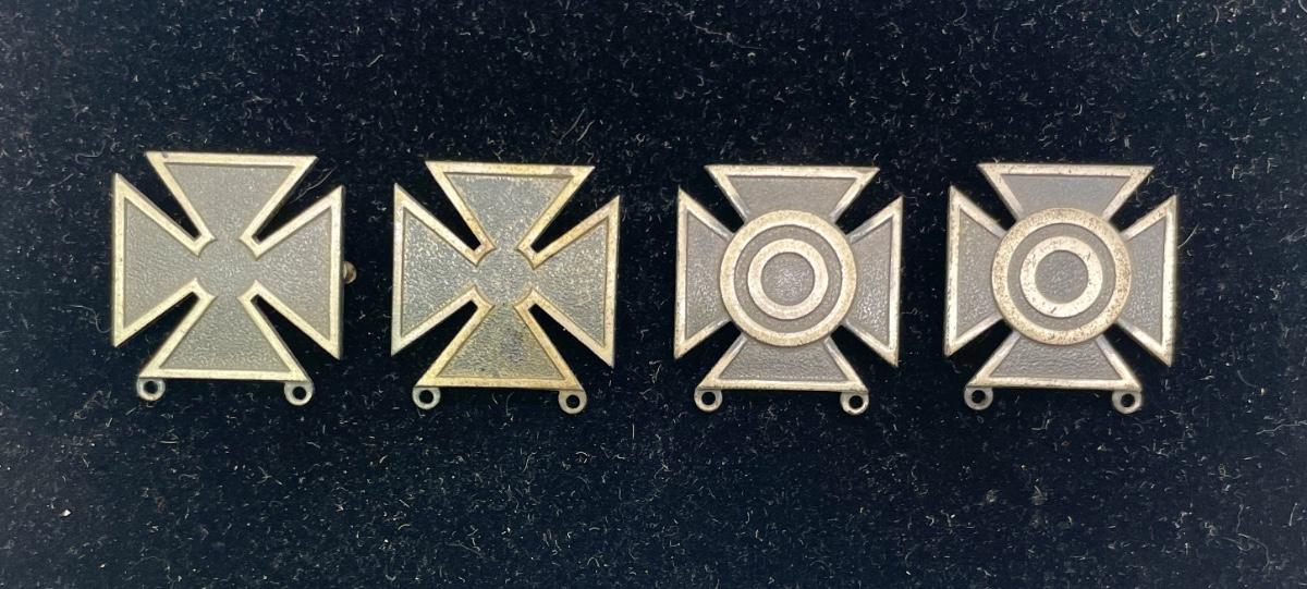 2 of each, both in good condition. Undated, not marked as sterling silver. All in good, clean condition. No specific weapon bars are included.