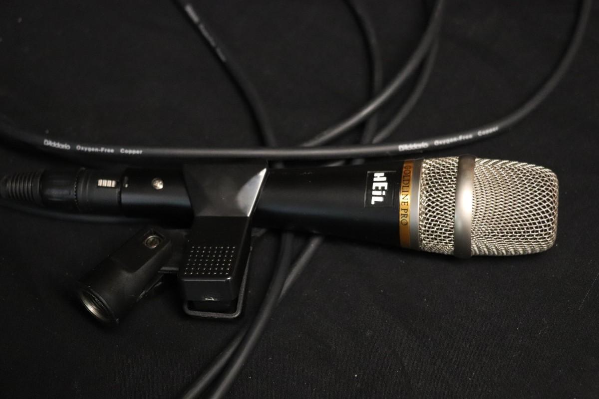 Lot of 4 Microphones with Behringer Xenyx Q1202USB Mixer and Accessories. Includes 2 AKG, 1 Heil Goldline Pro, and an unmarked microphone. Includes all microphone accessories shown. Condition as shown, we did not test the equipment (believed to be in working condition).