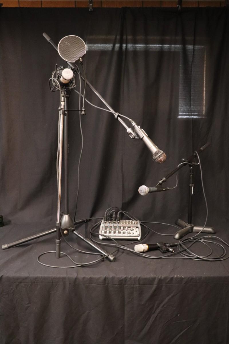 Lot of 4 Microphones with Behringer Xenyx Mixer and Accessories