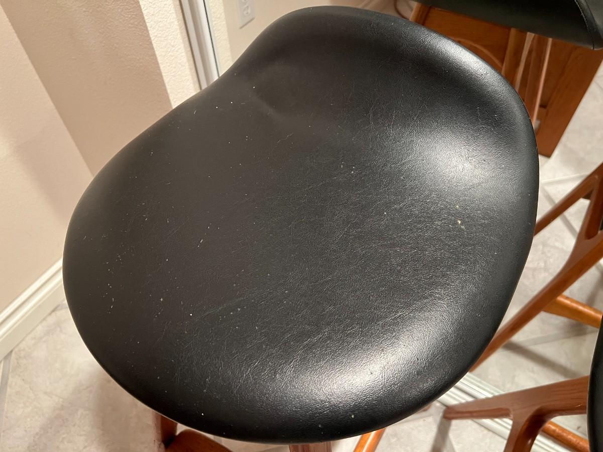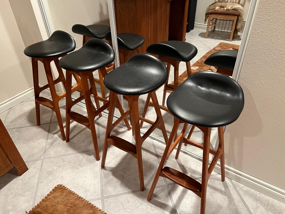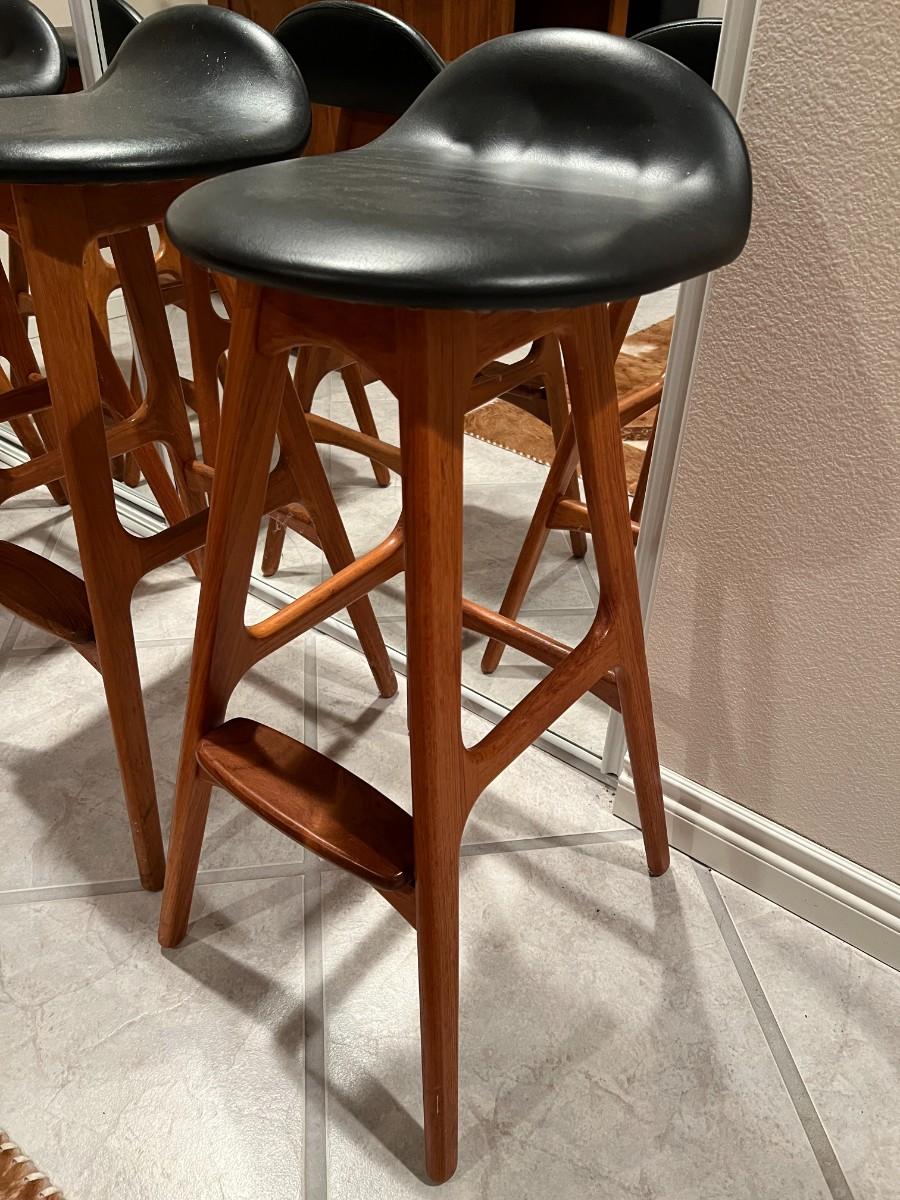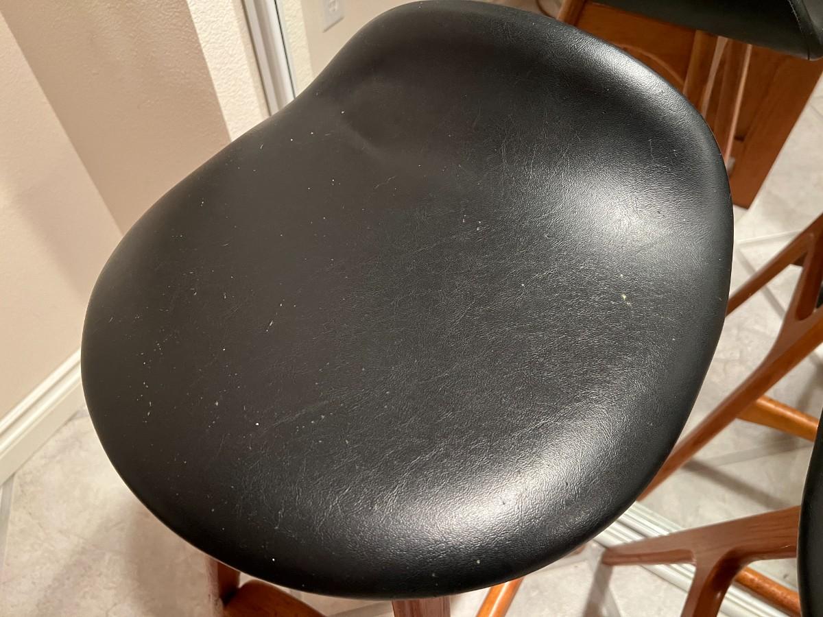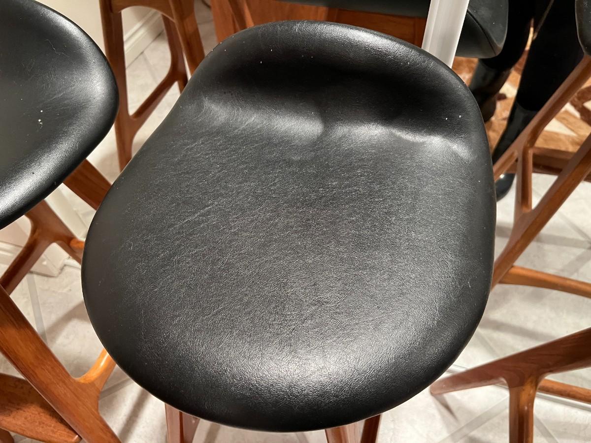 Lot of 4 Mid Century Modern O.D. Mobler Denmark Black Leather and Wood Bar Stools