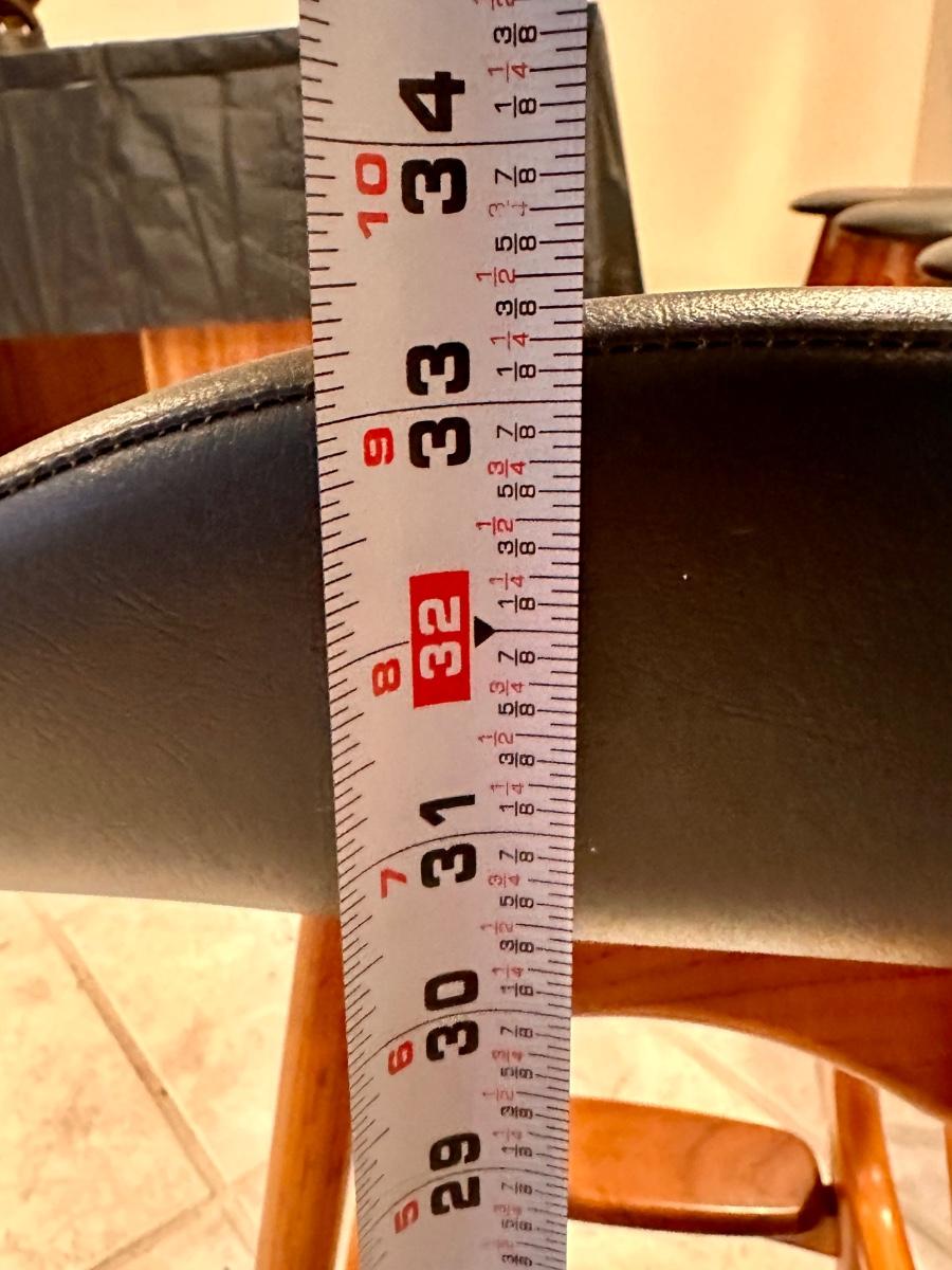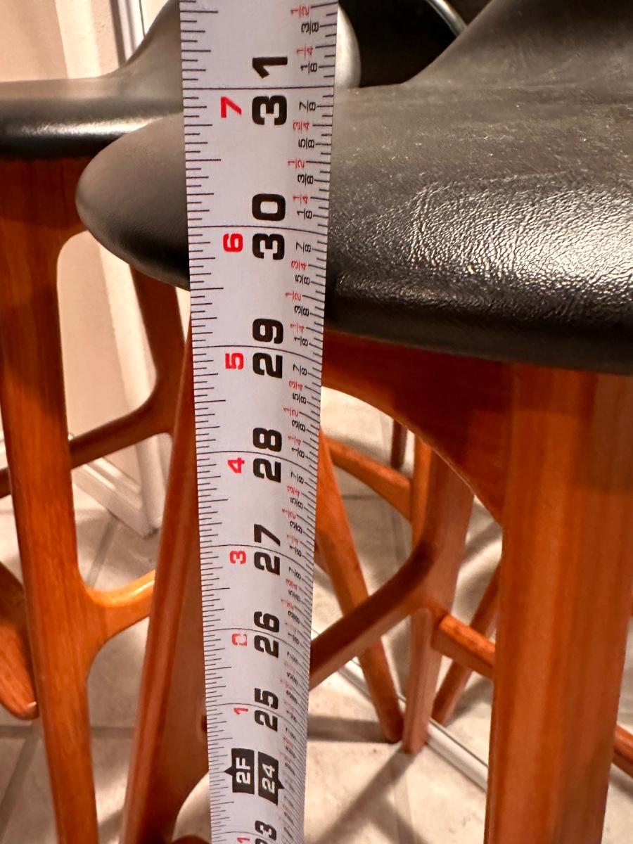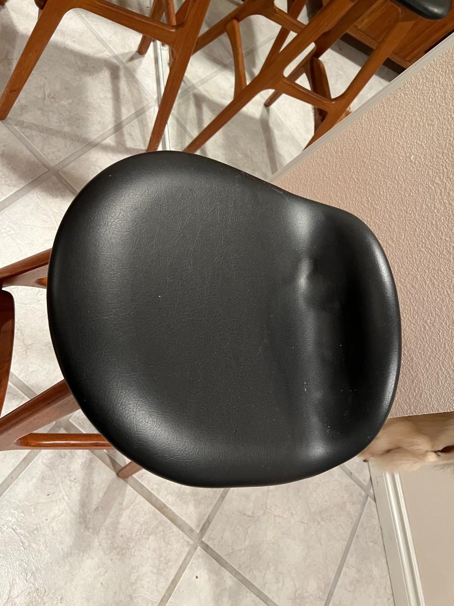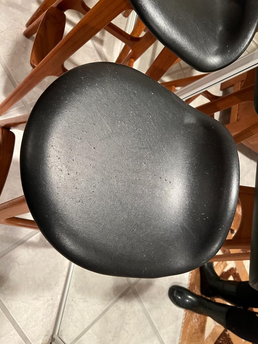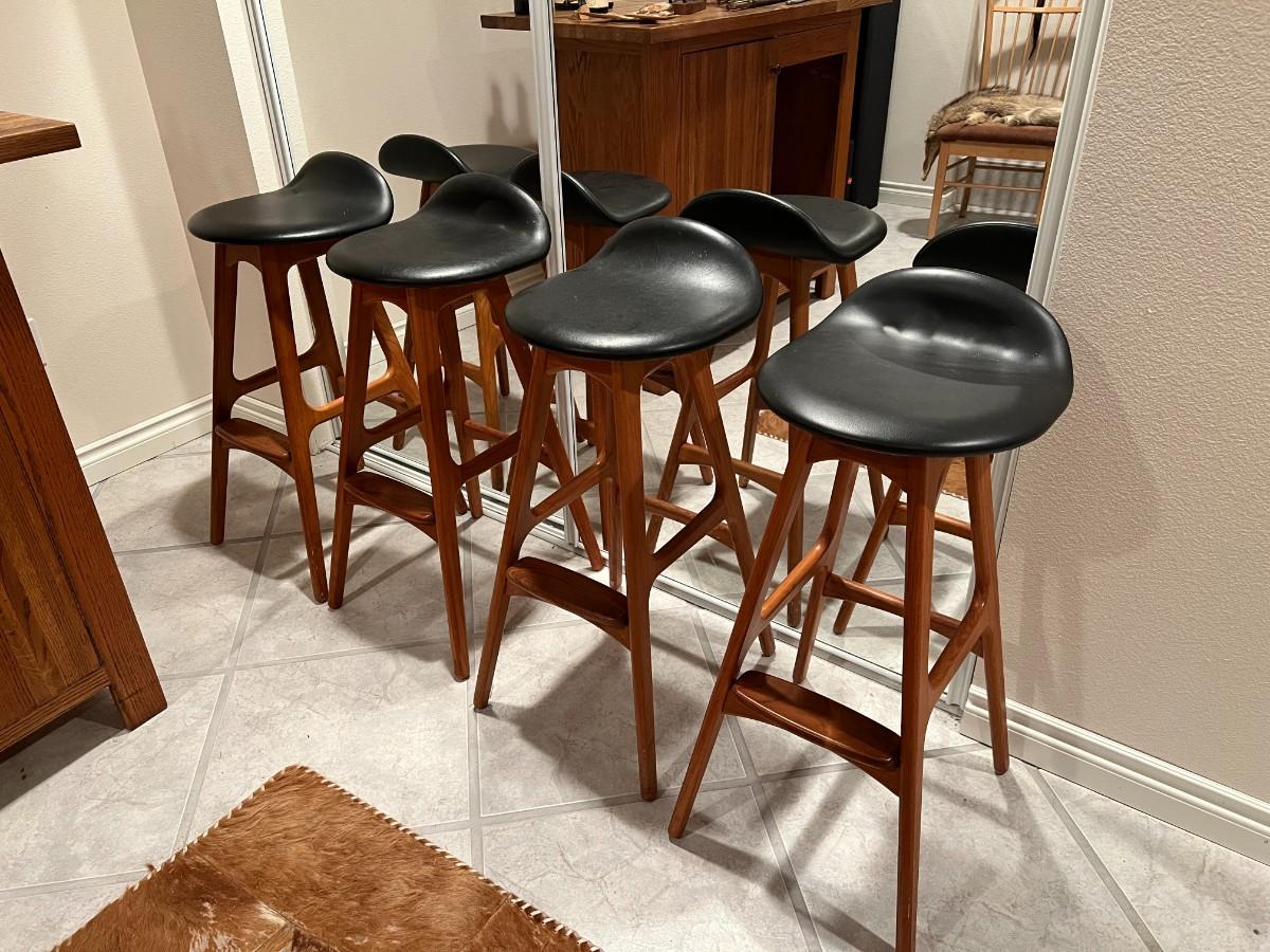 Lot of 4 Mid Century Modern O.D. Mobler Denmark Black Leather and Wood Bar Stools