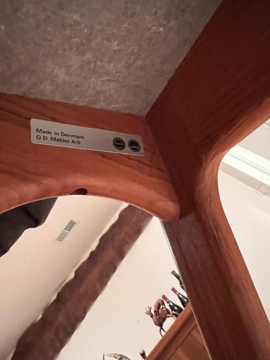 Lot of 4 Mid Century Modern O.D. Mobler Danish Black Leather and Wood (potentially teak) Bar Stools. Fantastic sleek design! In good condition, with some signs of wear on a couple seats (shown in images). Complete your Mad Men Bar!