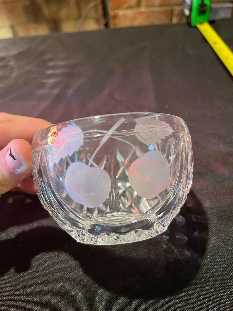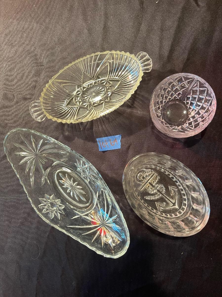 Lot of (4) misc. pcs. Of etched glassware and crystal