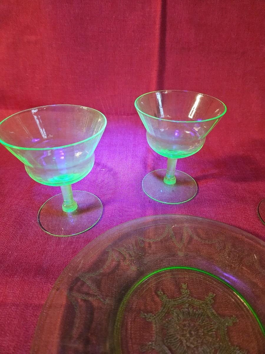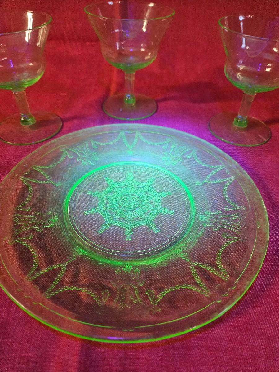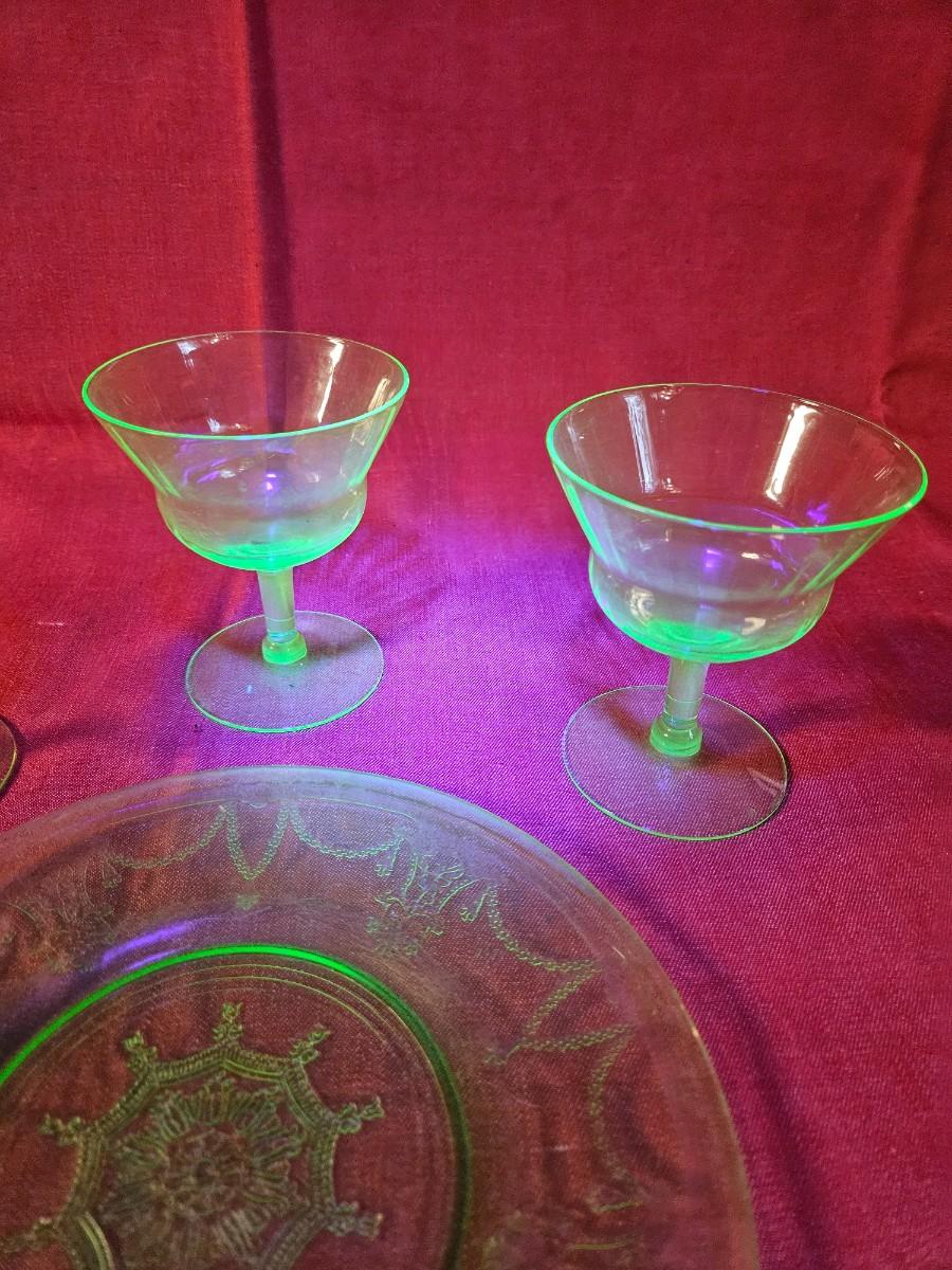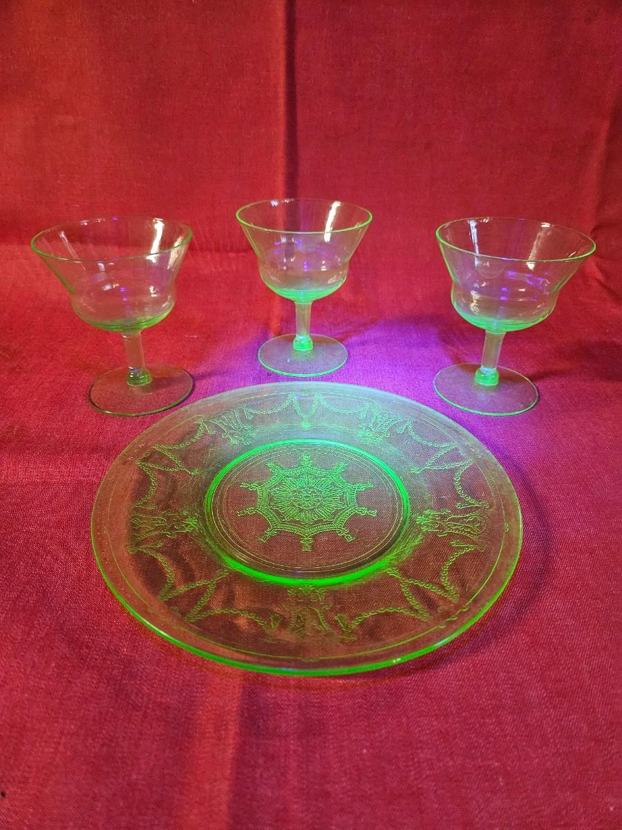 Lot of 4 Misc. Uranium Green Depression Glass