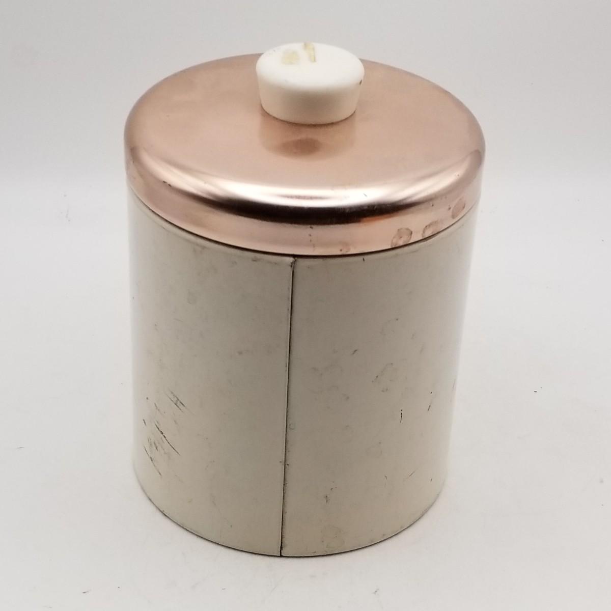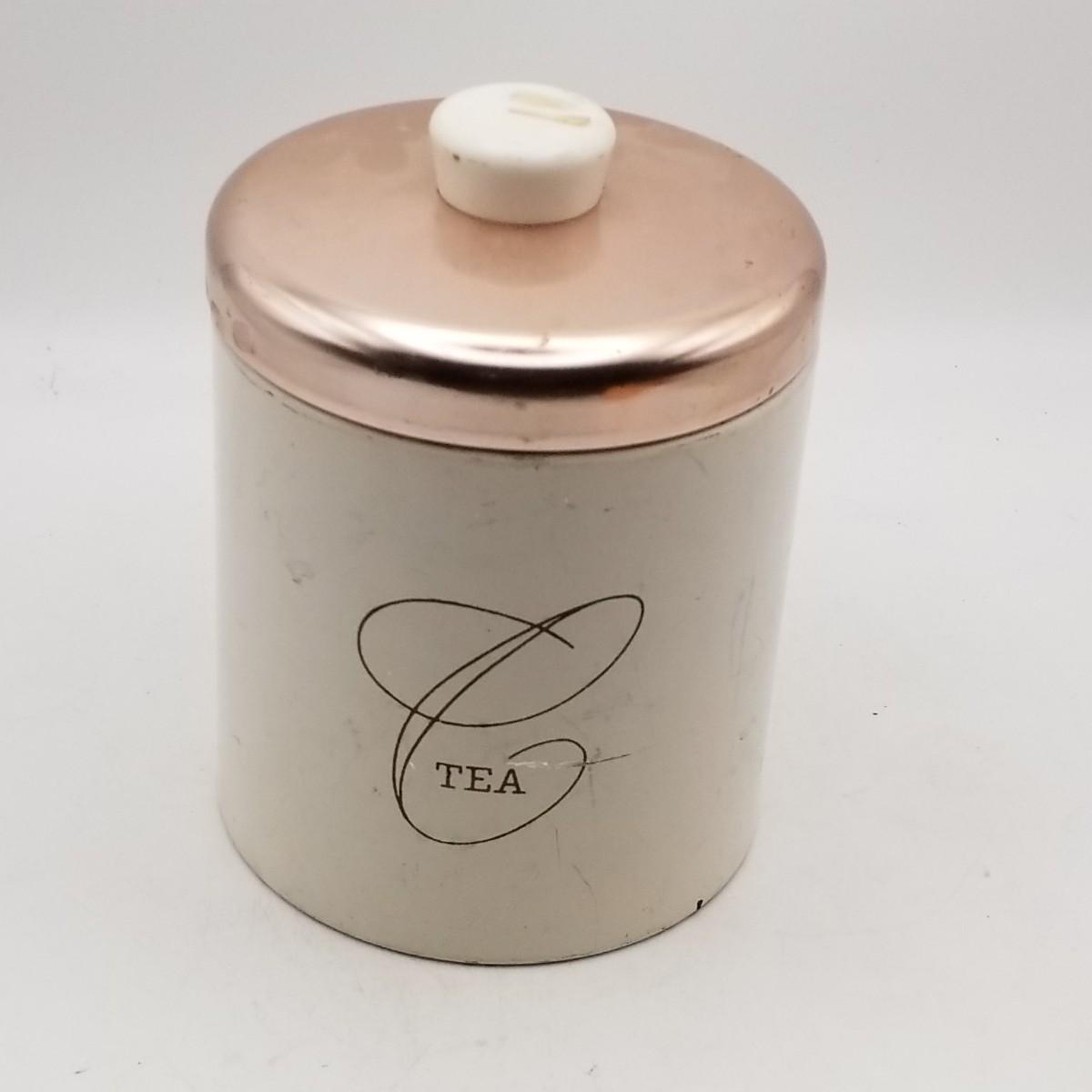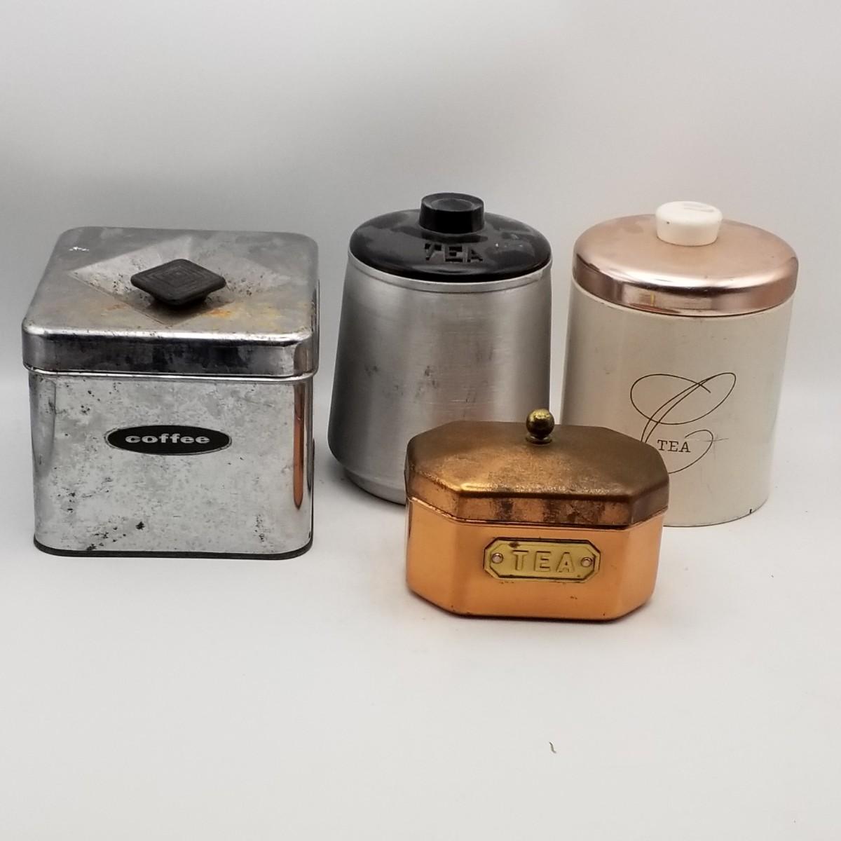 Lot of 4 Misc Vintage Tea and Coffee Canisters - Metal, Chrome Copper, Aluminum, Plastic - Ransburg Masterware Kromex - Some Sold As-Is