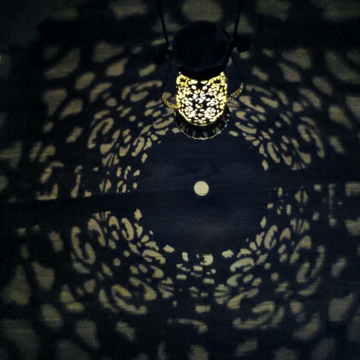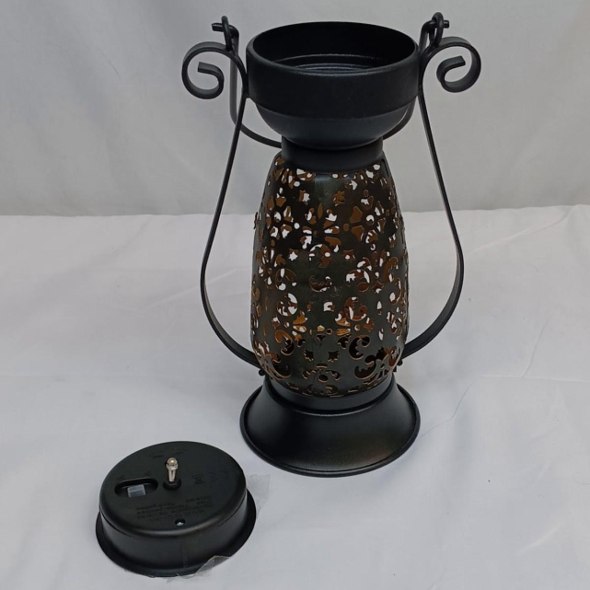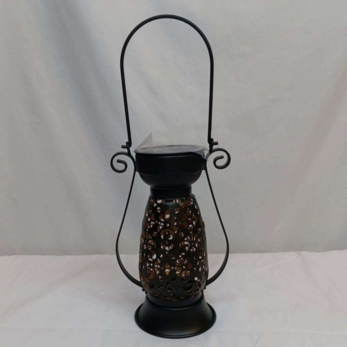 This lot of 4 solar powered LED lanterns are brand new. They feature a small solar panel to charge an internal battery that illuminates the LED light to produce a soft yellow color light. Each lantern measures approximately 9" tall from the base to the top of the lantern and approximately 14" from the base to the top of the handle.