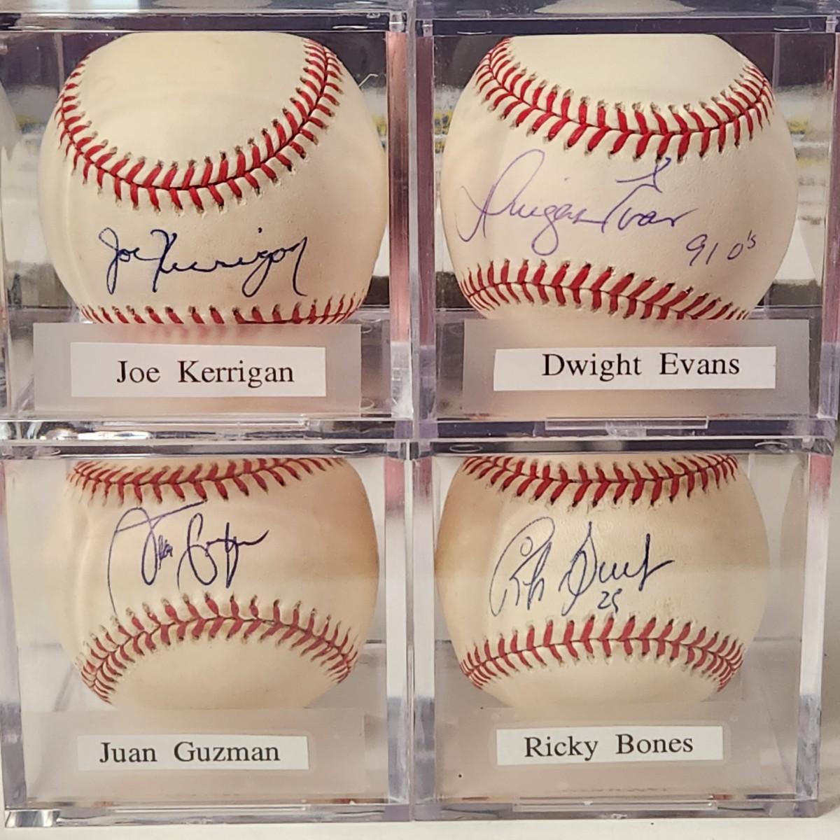 Lot of 4 OMLB Signed Autographed Baseballs Joe Kerrigan, Jaun Guzman, Dwight Evans, Ricky Bones