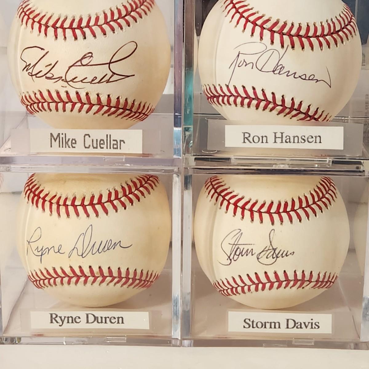 Lot of 4 OMLB Signed Autographed Baseballs Mike Cuellar Ron Hansen Ryne Duren, Storm Davis