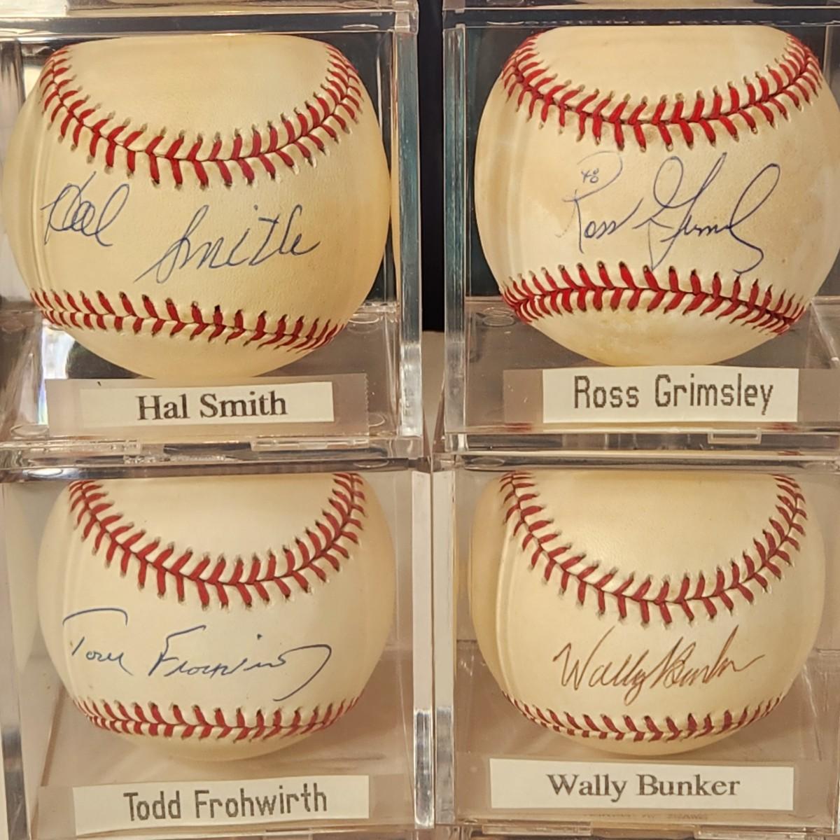 Lot of 4 OMLB Signed Autographed Baseballs Hal Smith, Ross Grimsley,Todd Frohwirth, Wally Bunker
