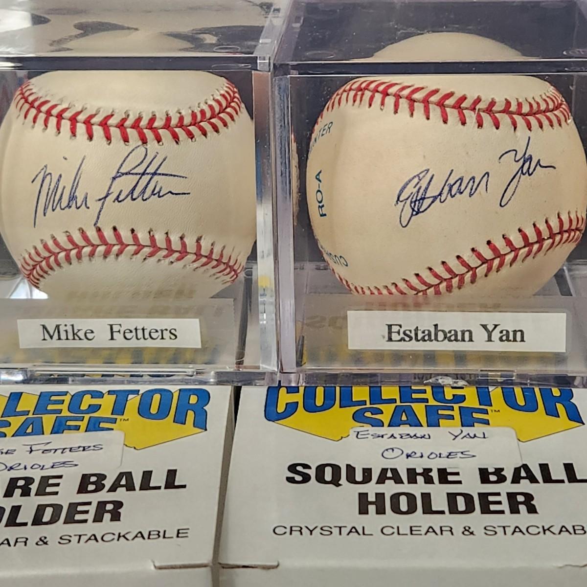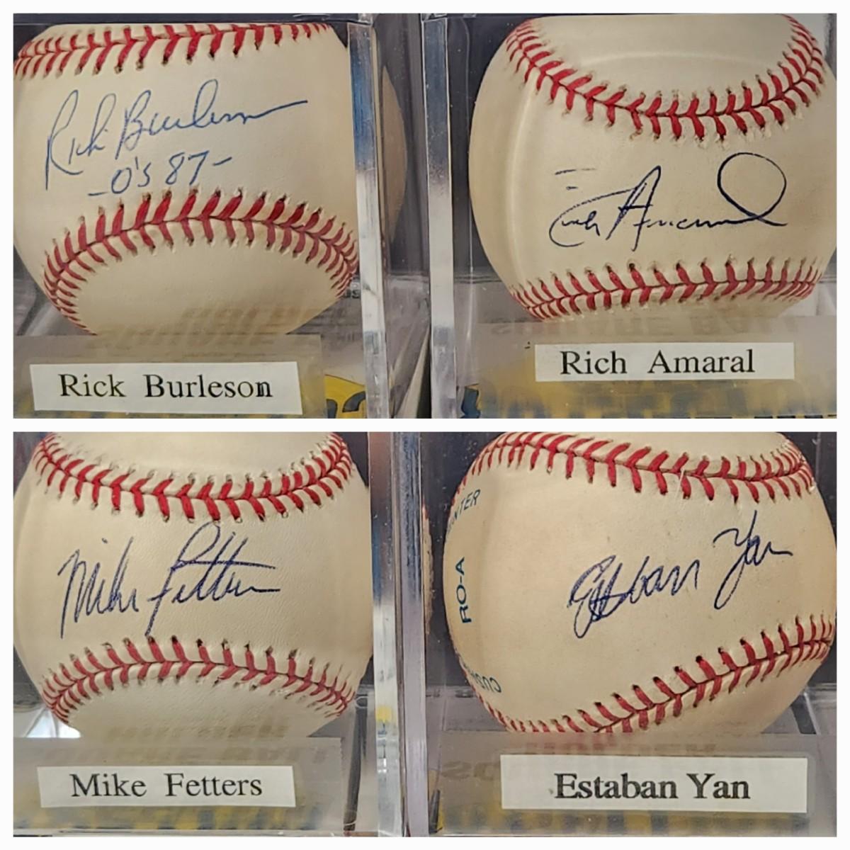 lot of 4 Orioles OMLB Signed Autographed Baseball In Collectors Case Mike Fetters, Estaban Yan, Rick Burleson , RichAmaral