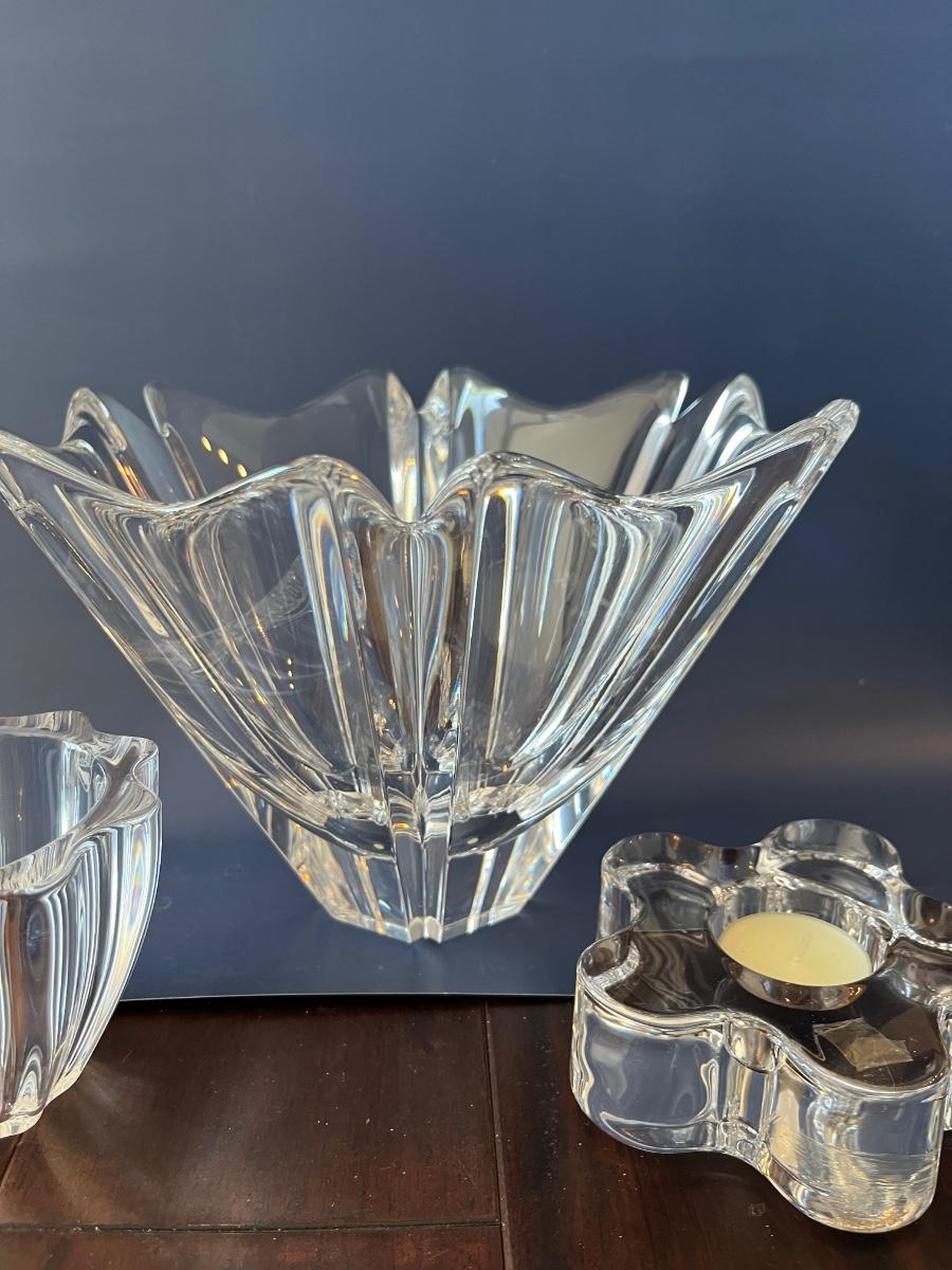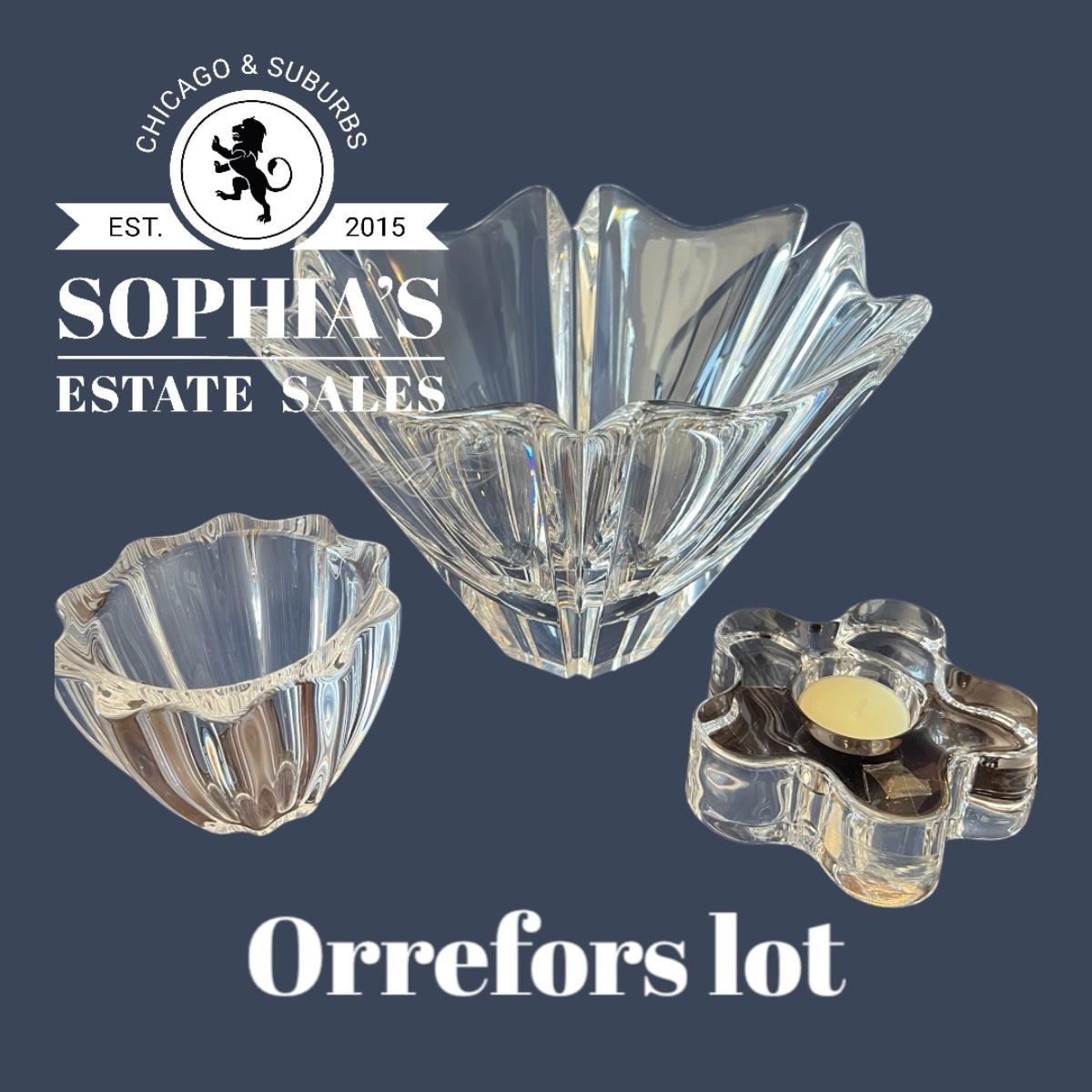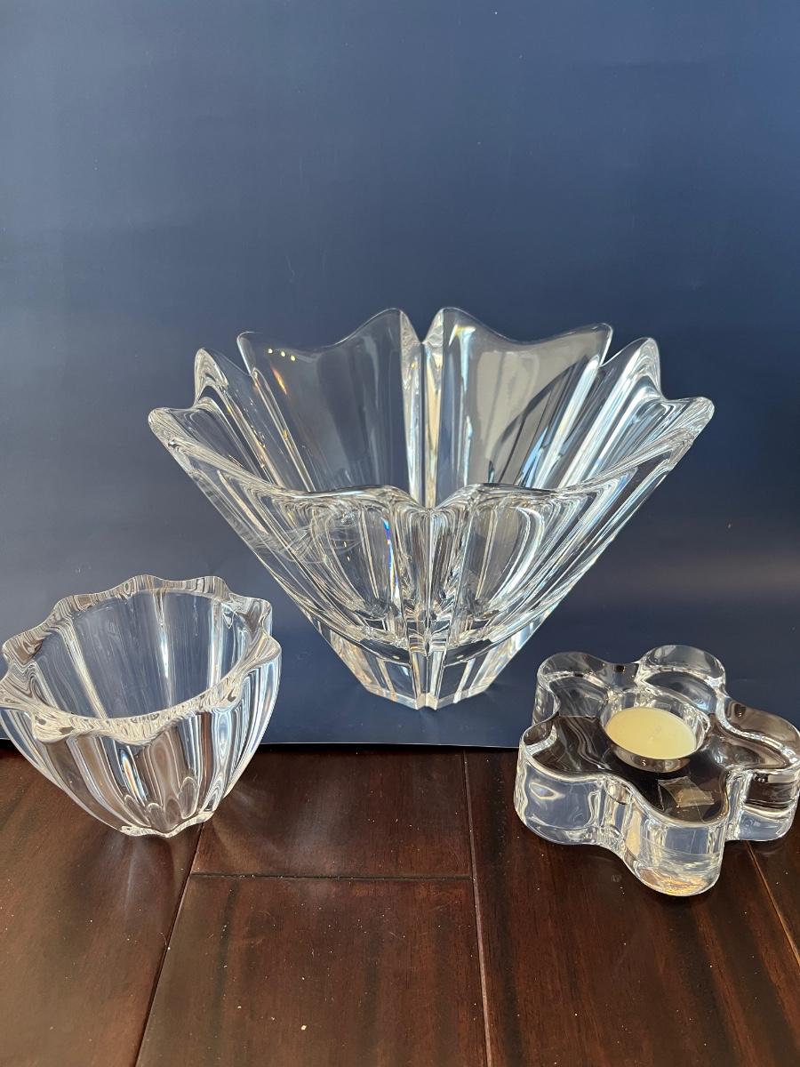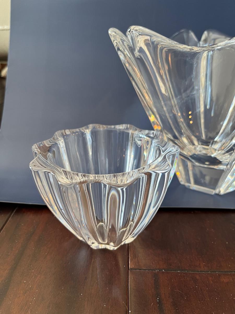 Lot of 2 bowls and 2 votive holders of Orrefors crystal. All in great shape with no chips or cracks. Priced to resell.