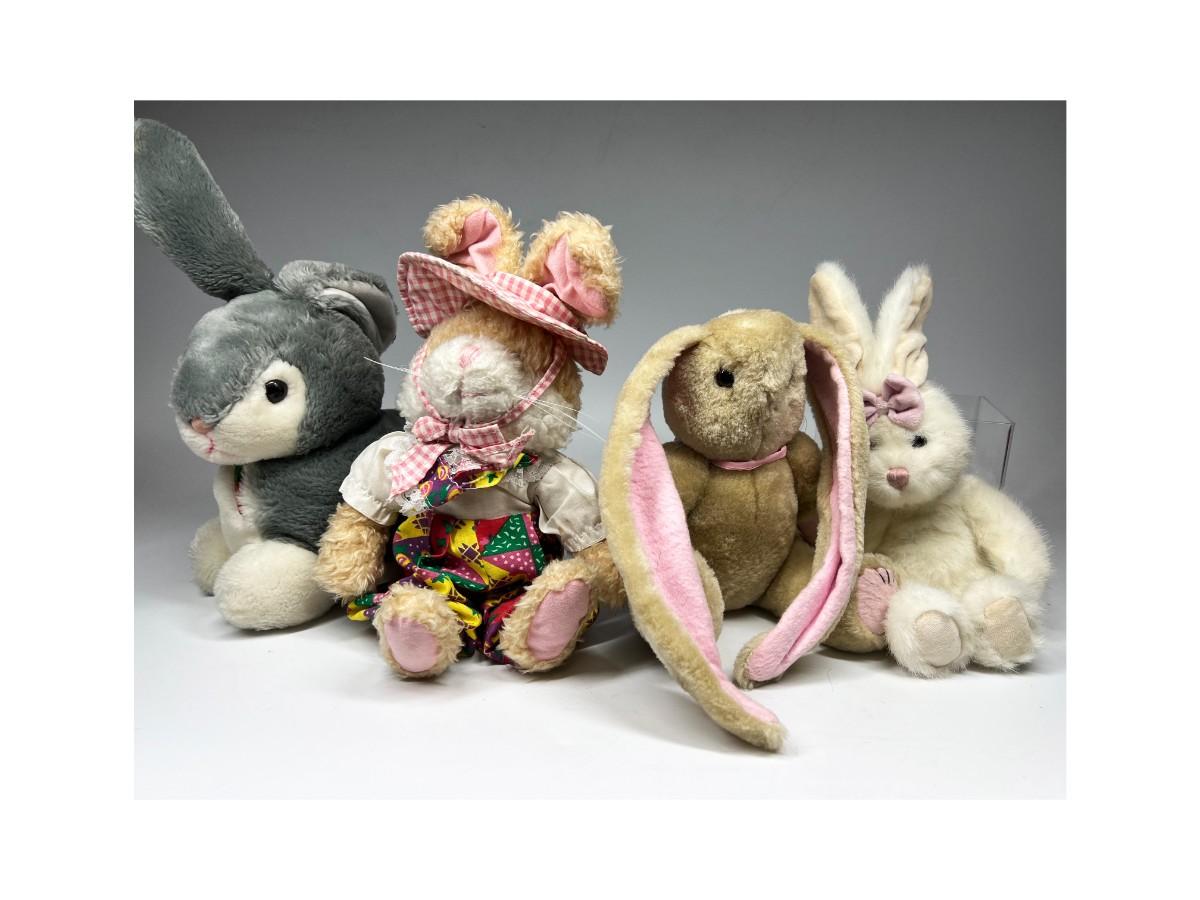 Lot of 4 Plush Stuffed Bunny Eater Rabbit Animals. Each one different. May be dusty from storage and display.