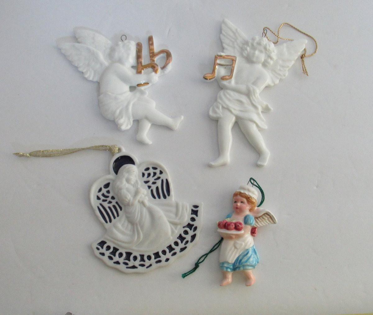 Lot of 4 Porcelain Angel Christmas Ornaments
