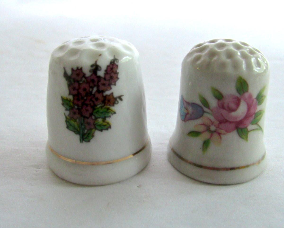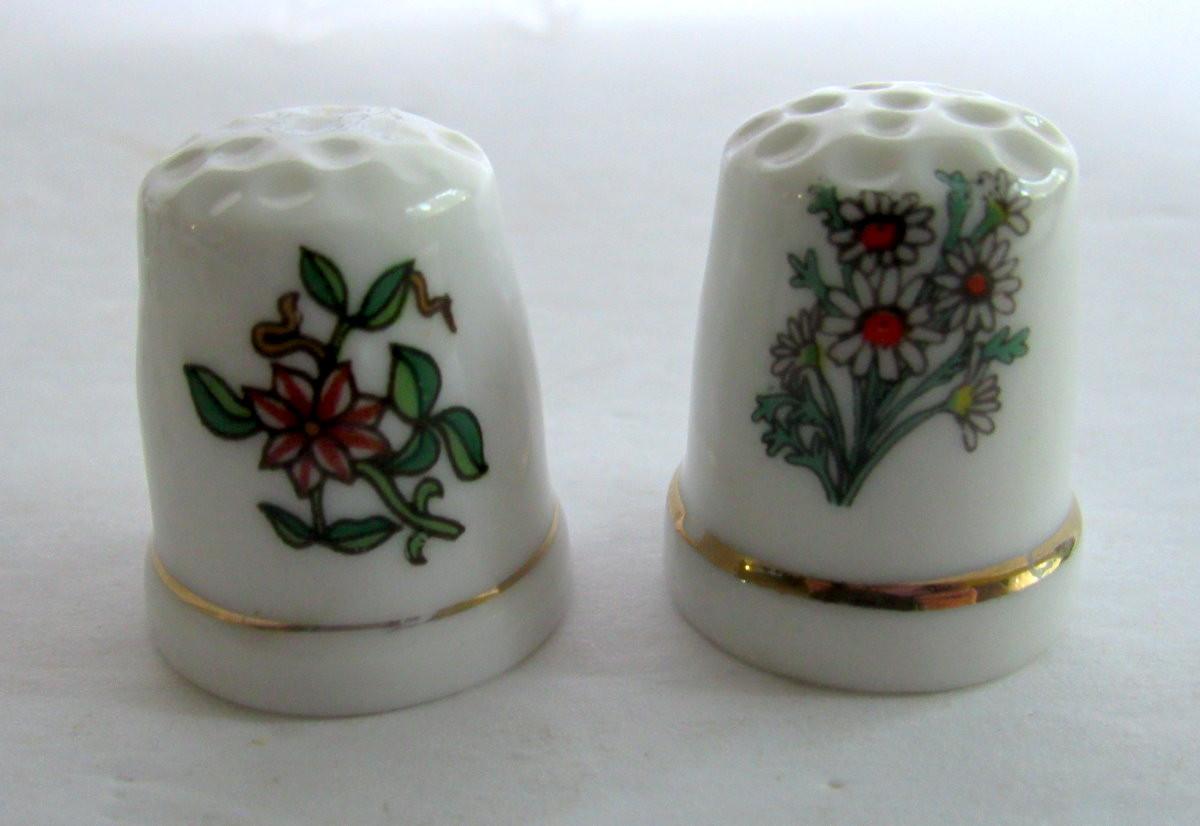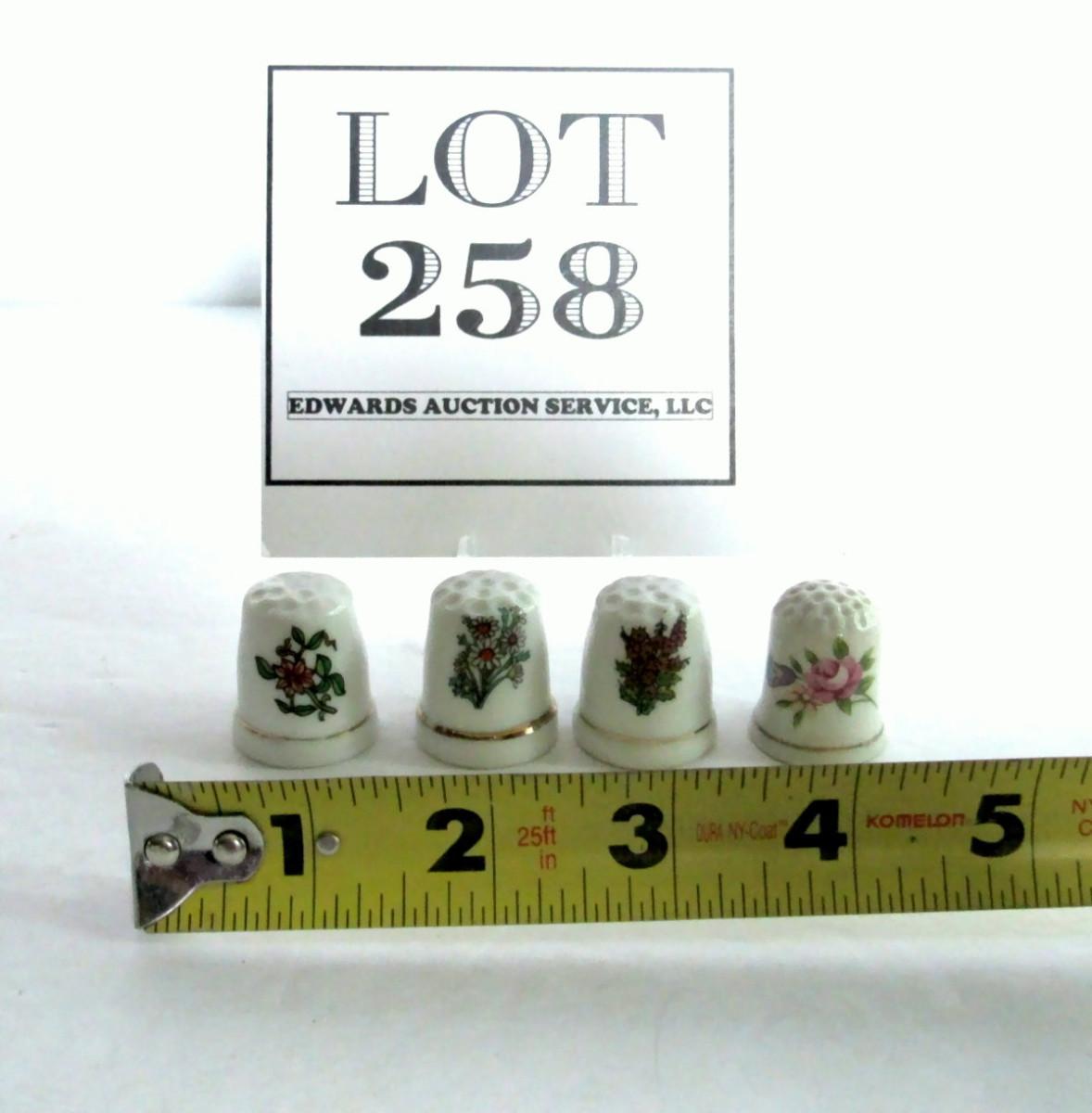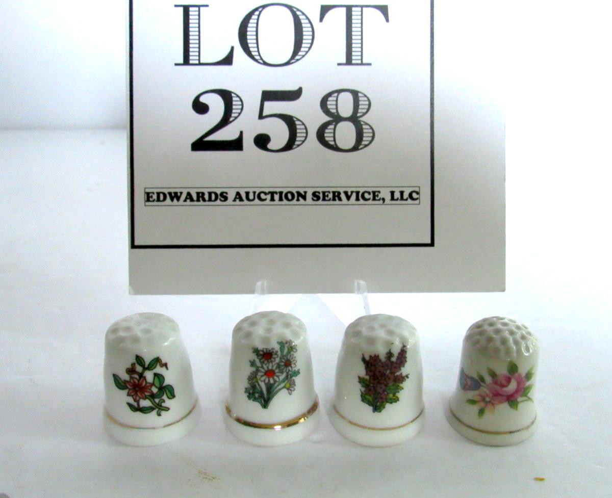 Lot of 4 Porcelain Thimbles, Floral Theme