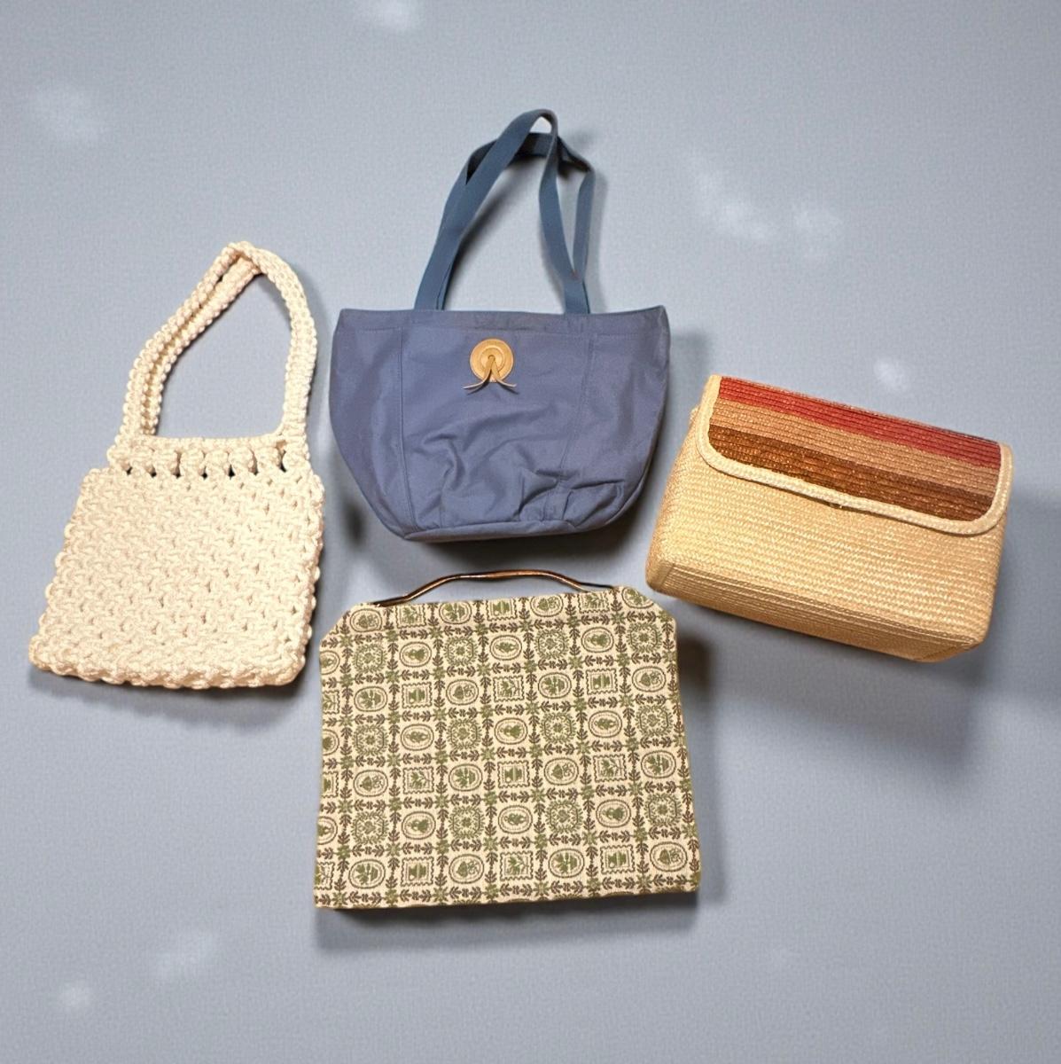 Lot of 4 Vintage Purses/Handbags, Straw (new), Macrame