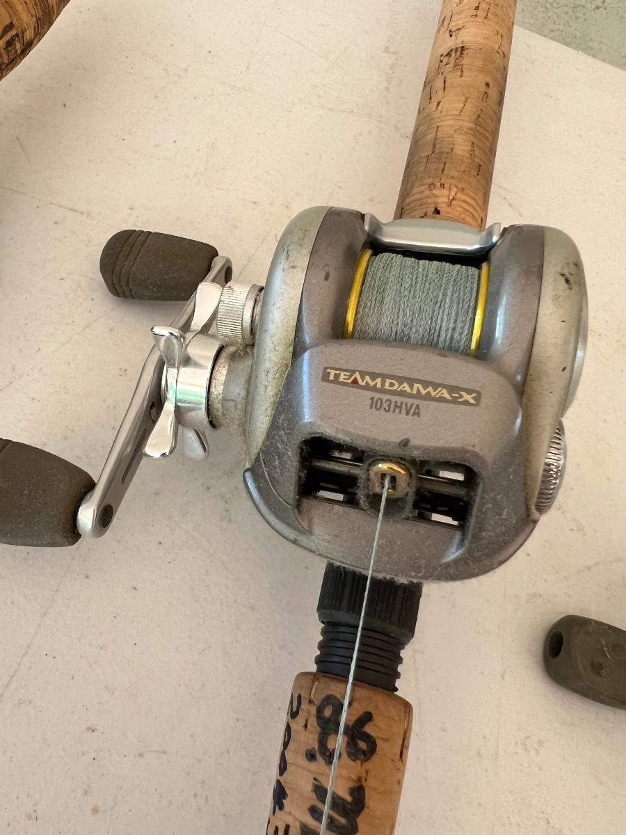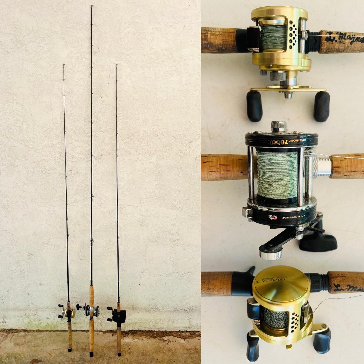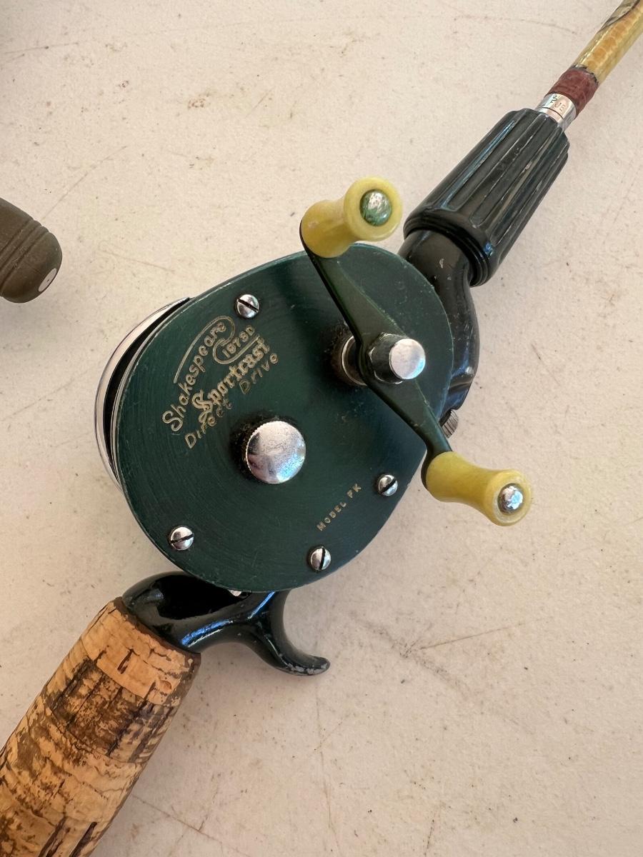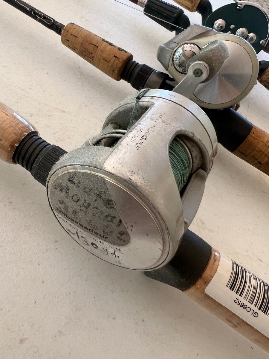 Lot of 4 rod & reel combos. See pictures for brands and condition. Smallest rod does have some damage to handle(see picture). Smallest rod is 5ft. and tallest is 6ft. 6in. Rods do not have any cracks or damaged eyes.