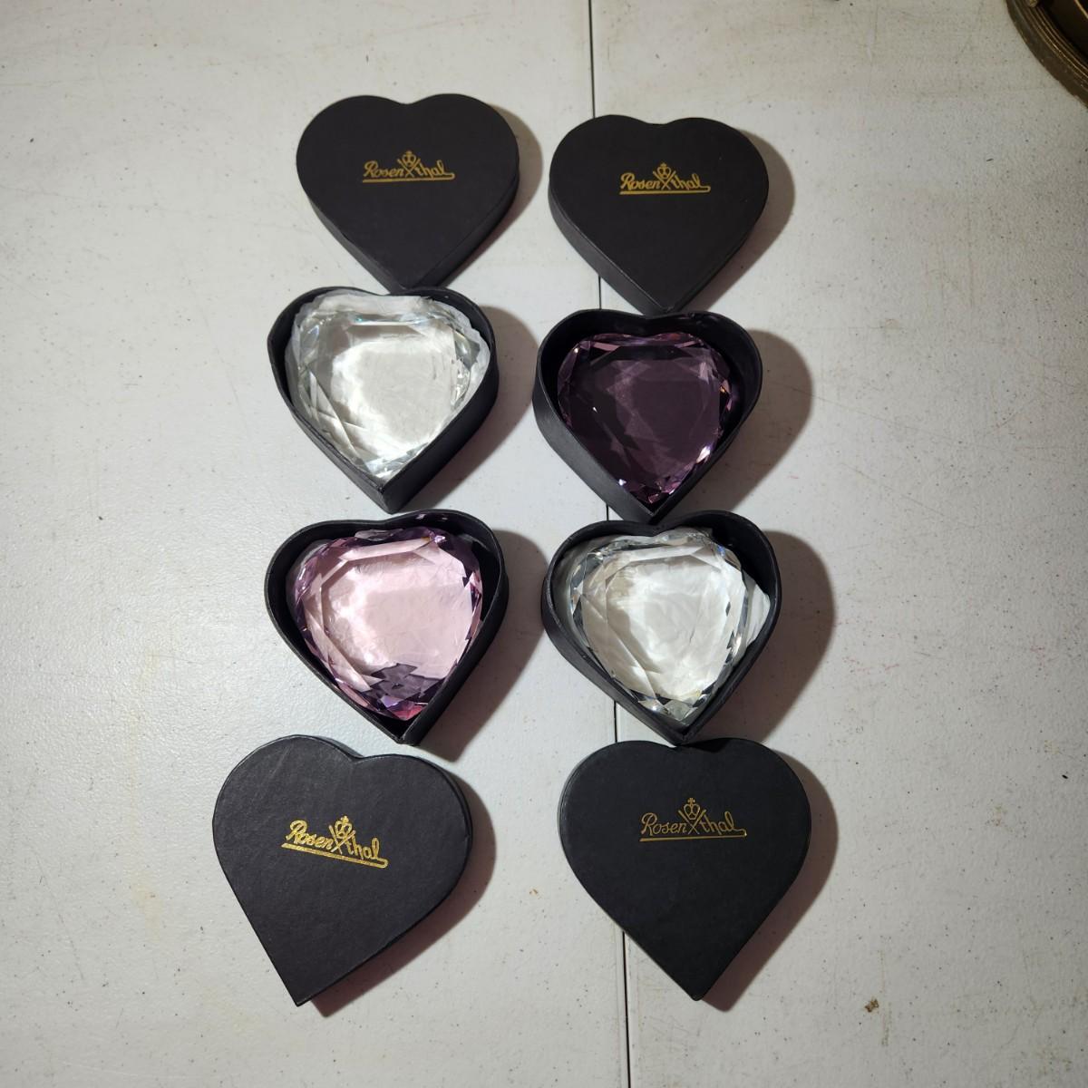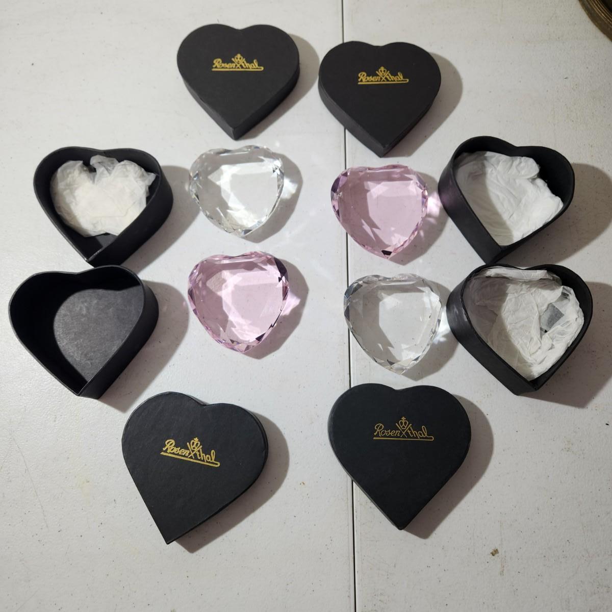 Lot of 4 Rosenthal Clear & Pink Crystal Hearts w Boxes