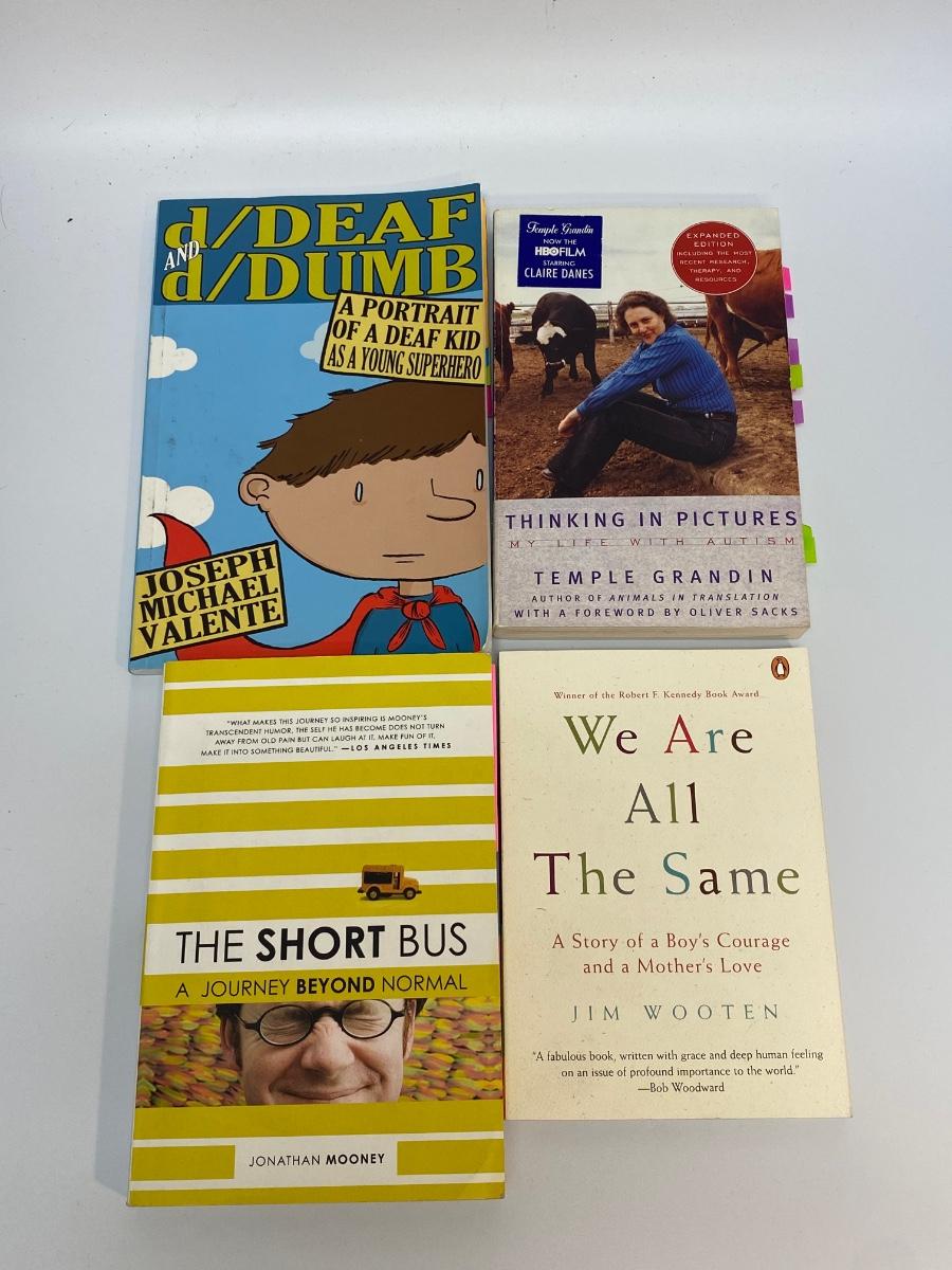 Lot of 4 Special Education Theme Books. Previously owned by a teacher. There is some highlighting inside as they were used in class. In good condition.