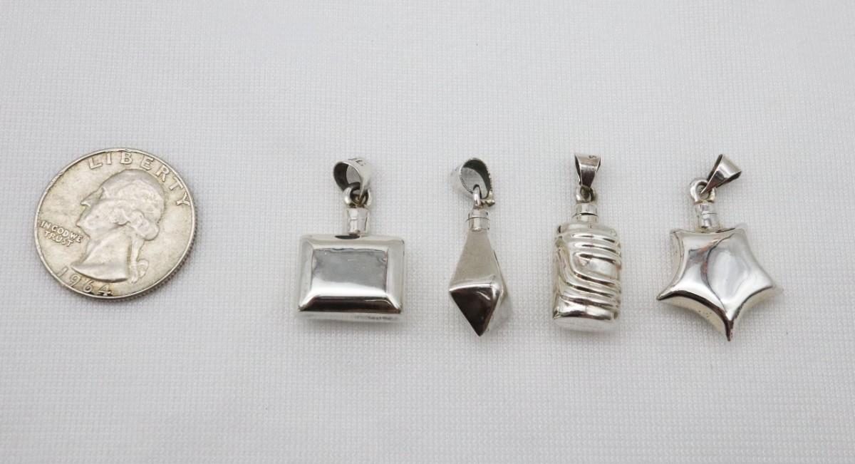 Lot of 4 Sterling Silver Miniature Perfume Bottle Charms/ Pendants