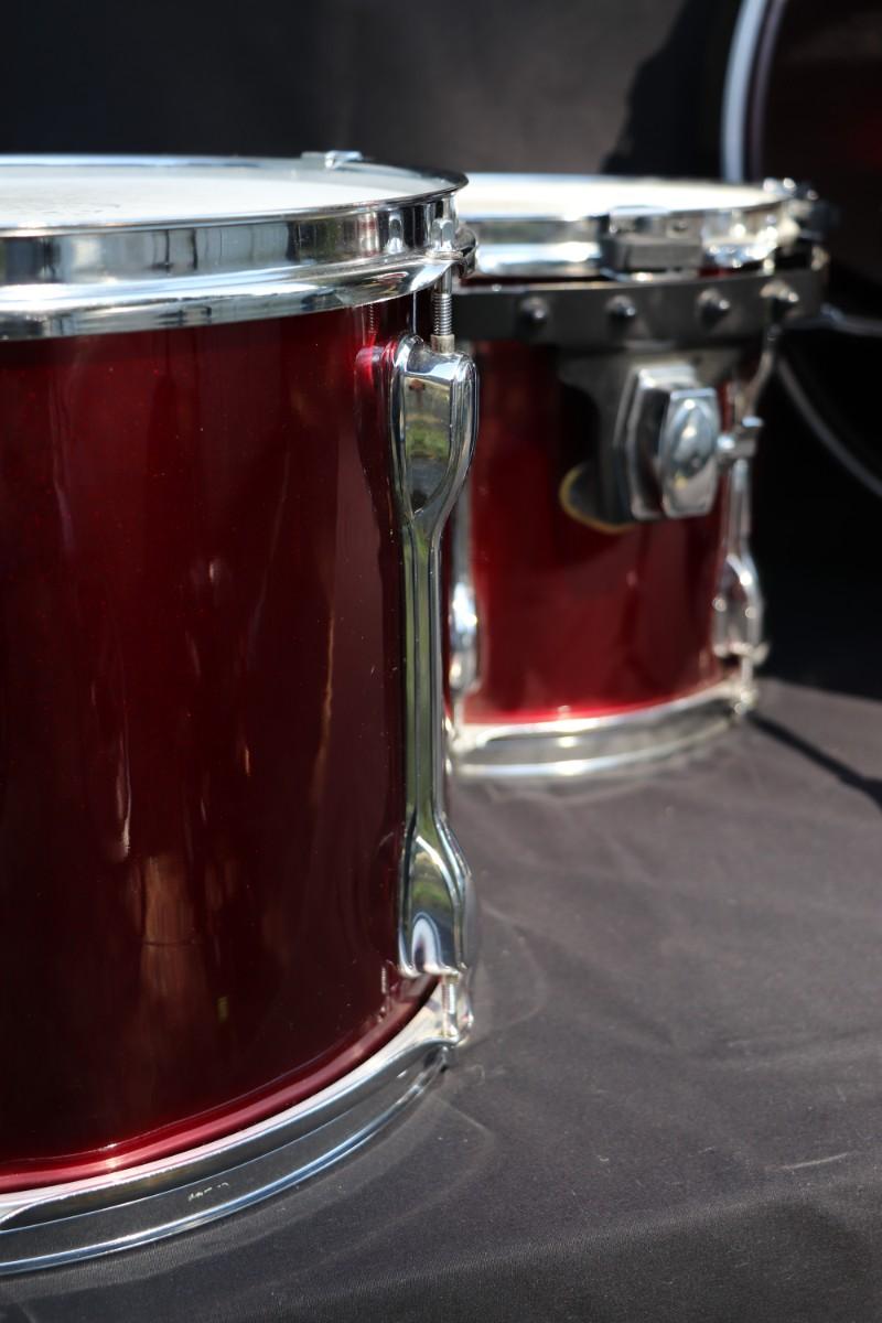 Lot of 4 TAMA Rockstar Drum Set in beautiful deep red finish. Condition as shown.