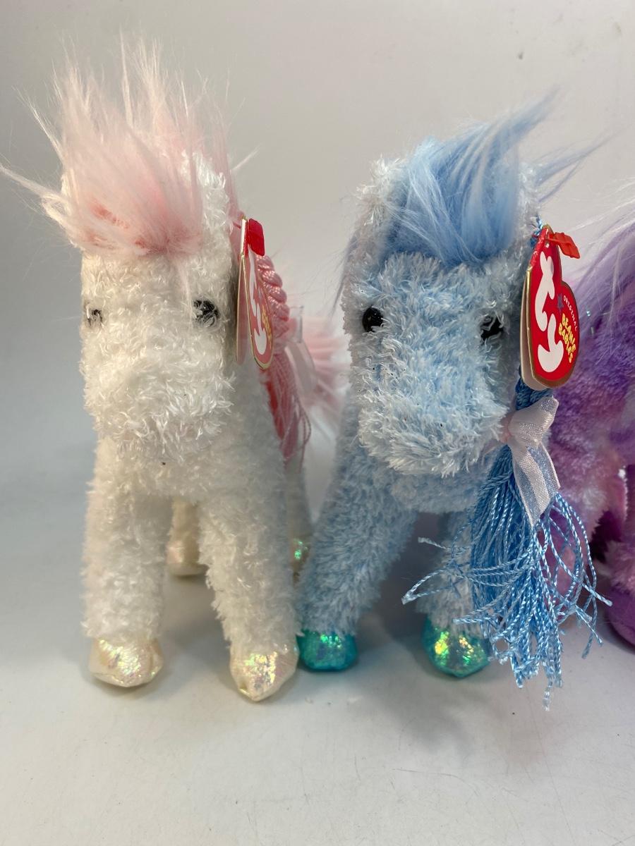 Lot of 4 TY Beanie Babies Horse Unicorn Plush Stuffed Animals. All have hang tags. Good condition.