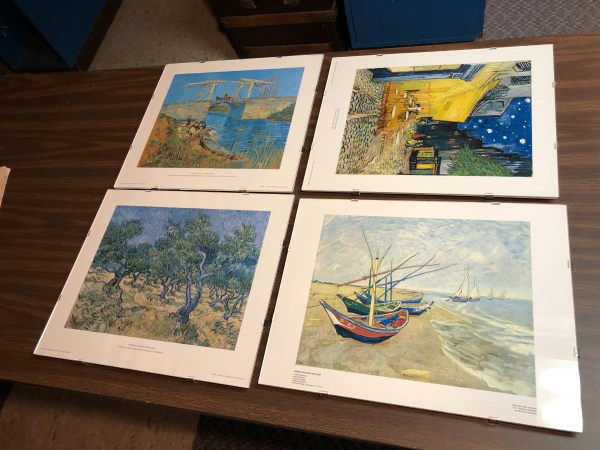 Lot of 4 Vincent Van Gogh Art Prints Glass Covered