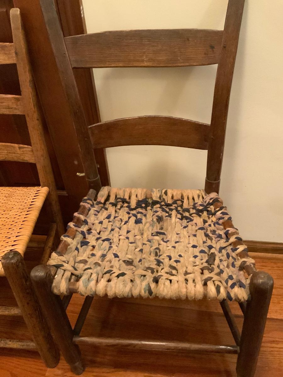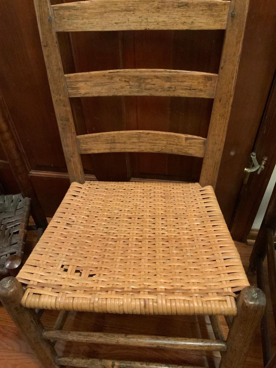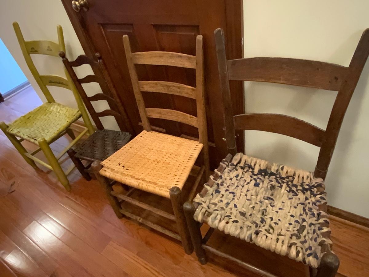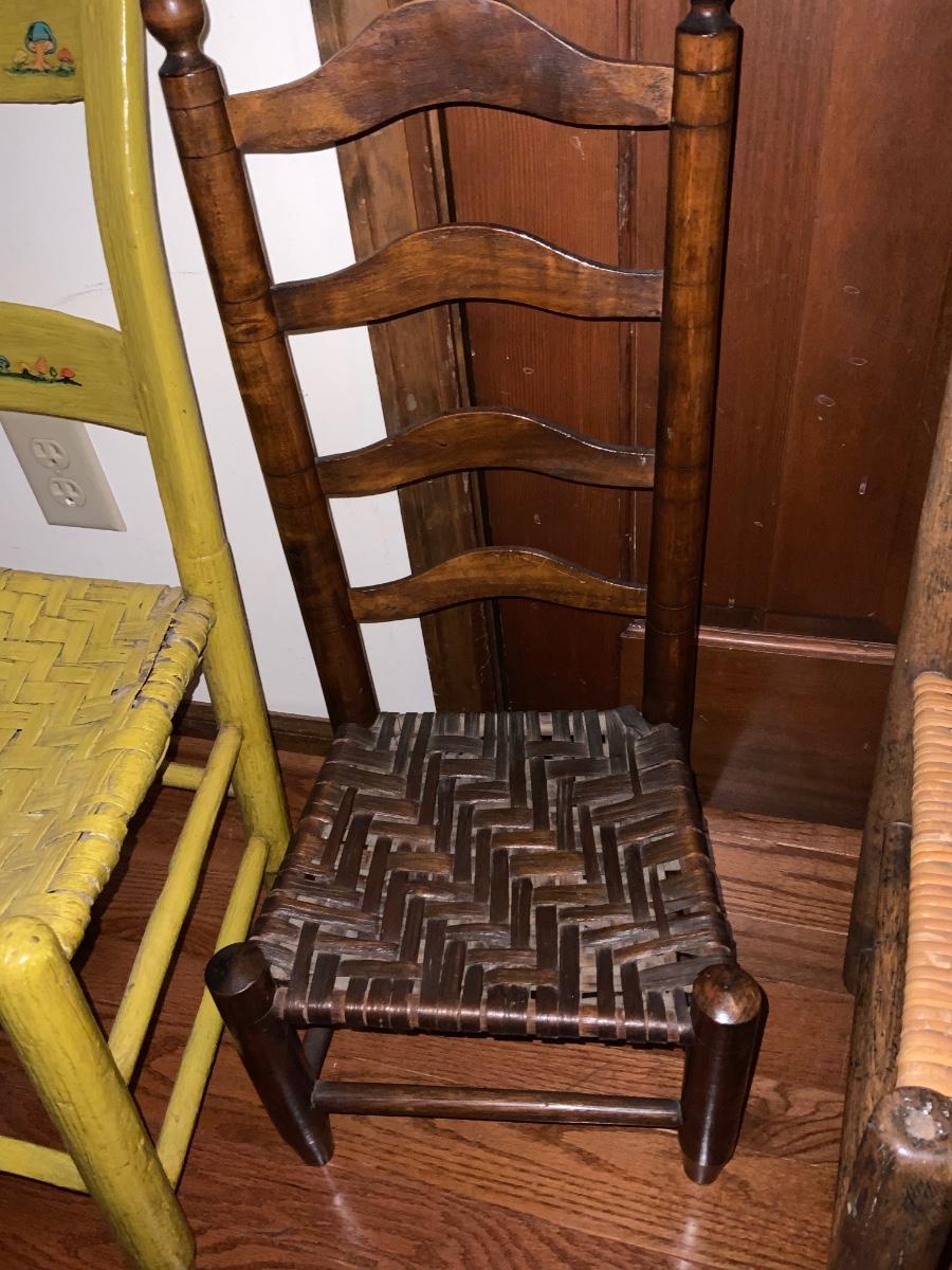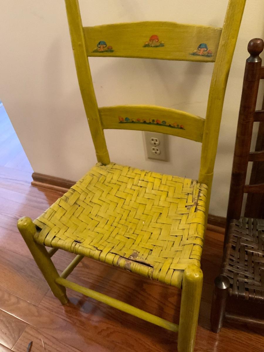 Lot of 4 vintage chairs and a few chair pads and a Childs chair