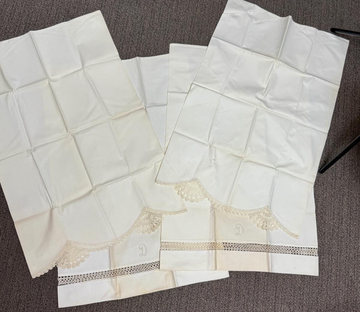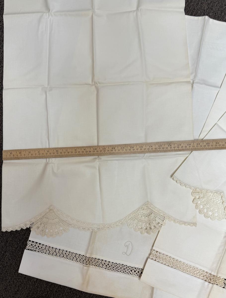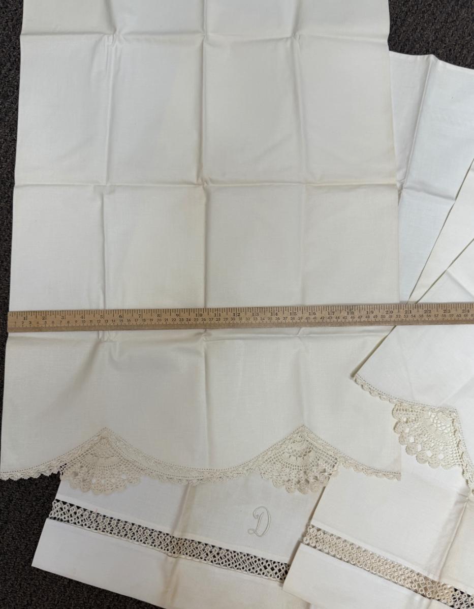 Lot of (4) Vintage Cotton Bed Pillow Covers Embroidered and crocheted