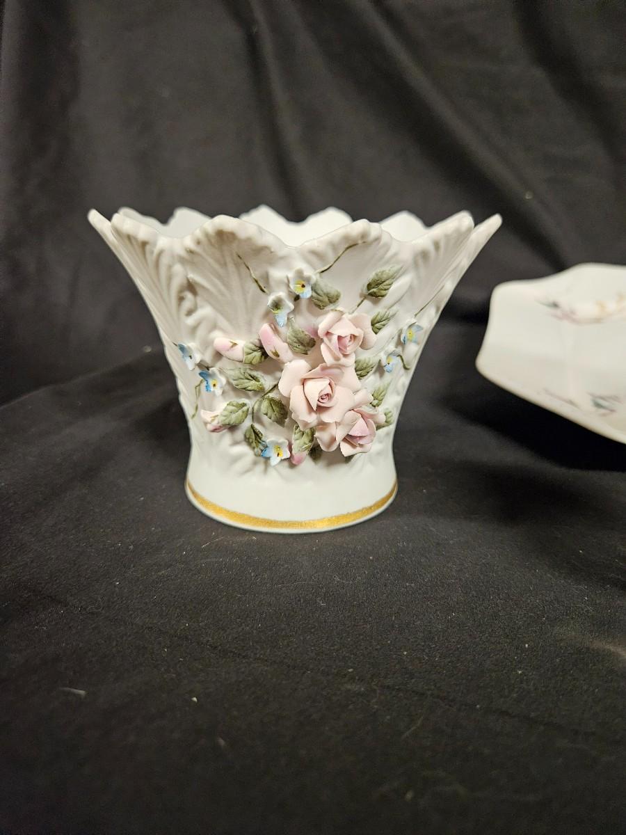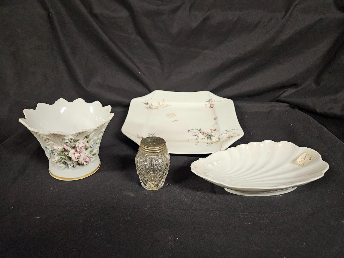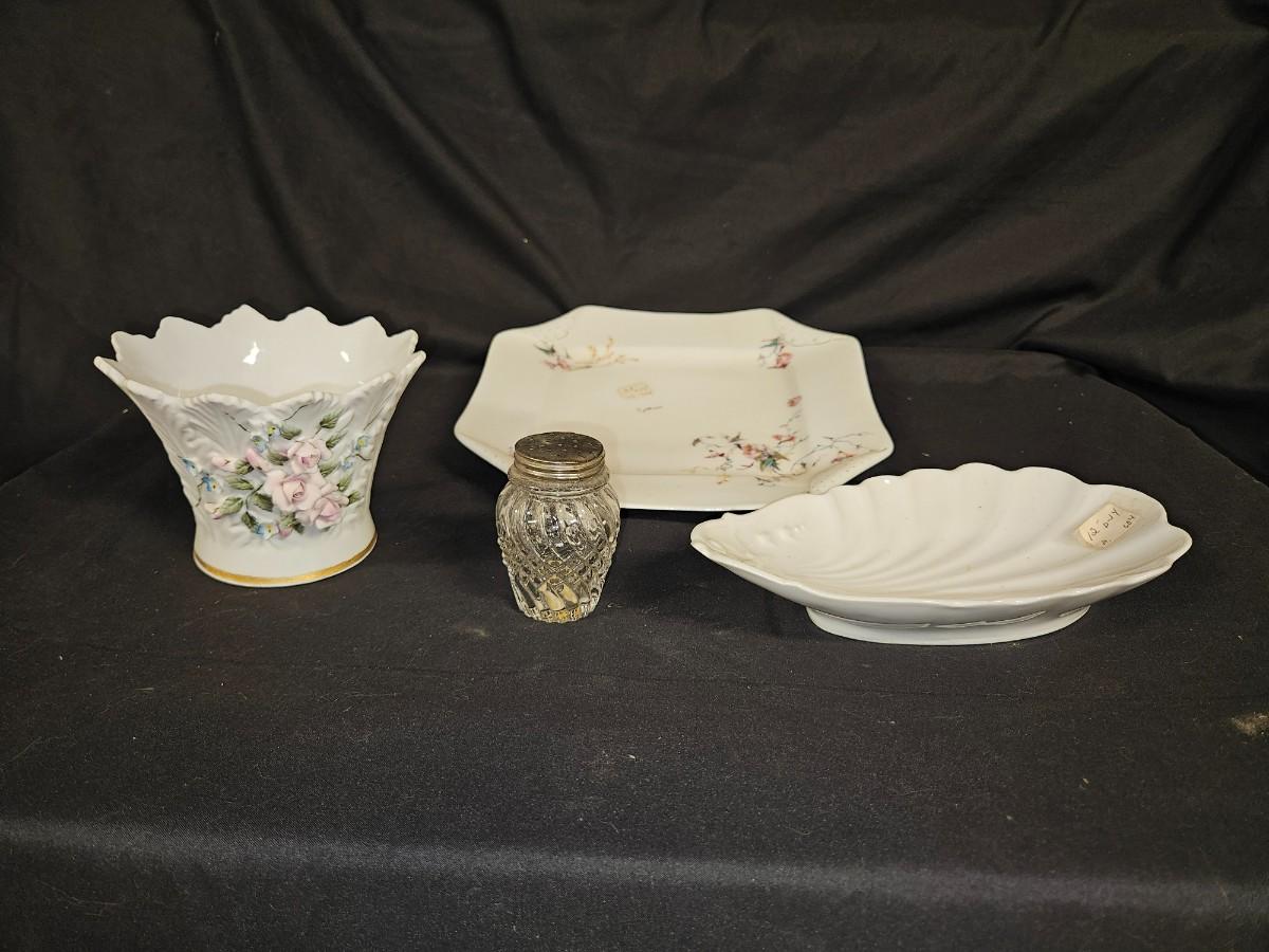 Lot of 4 Vintage Items Including Lefton Style Vase/Bowl, Decorative Plate and Salt Shaker