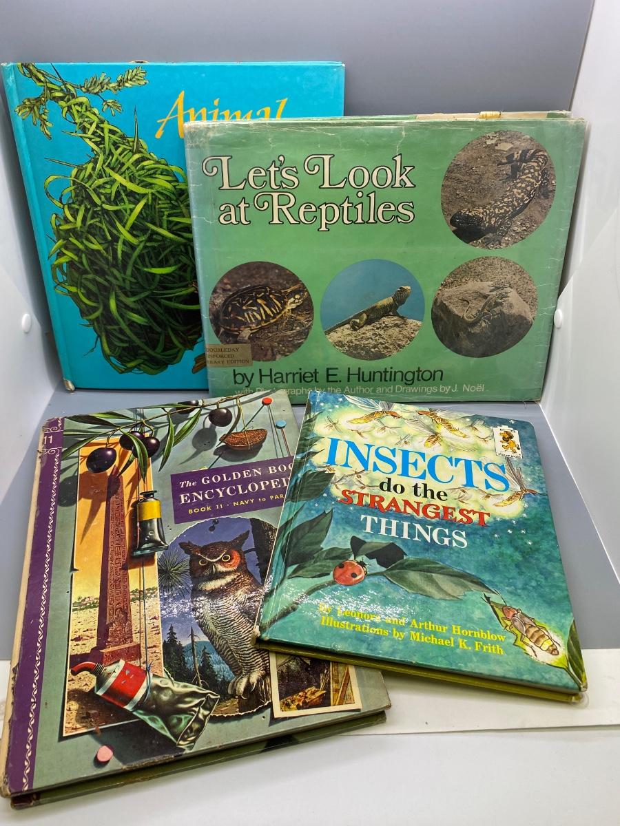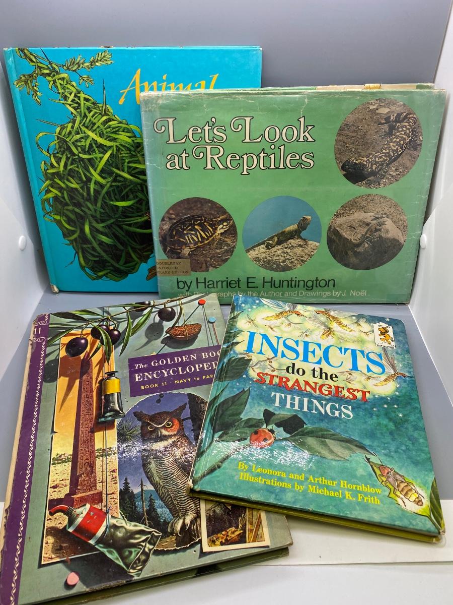 Lot of 4 kids reference style books. One is an illustrated encyclopedia volume "Navy-Parasites", the others are animal related. Well-read conditions.