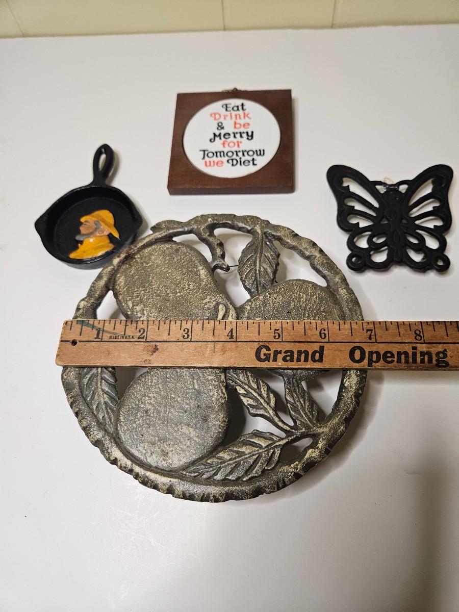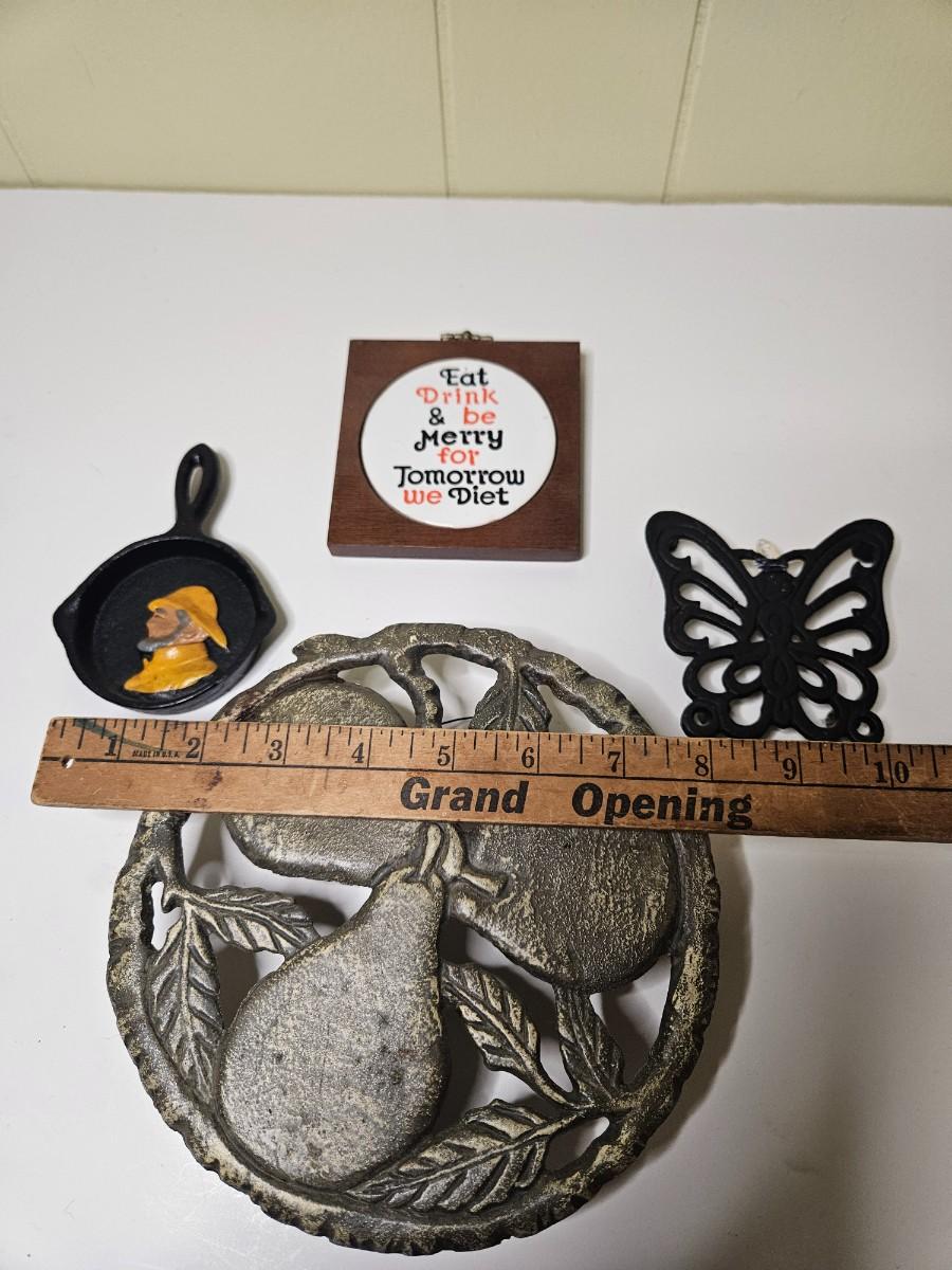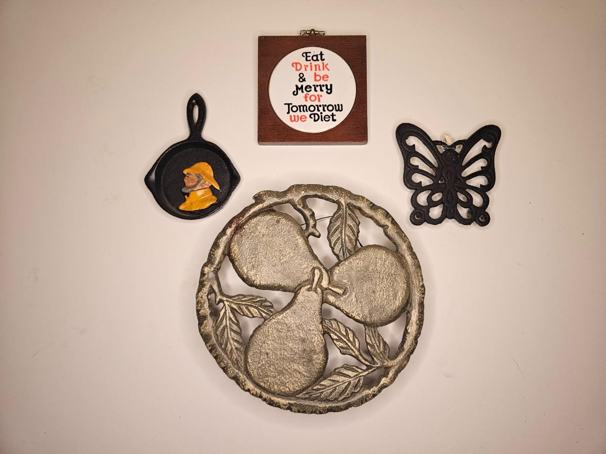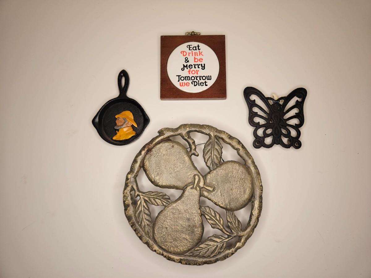 Lot of 4 Vintage Kitchen Decor Including Cast Iron Trivots