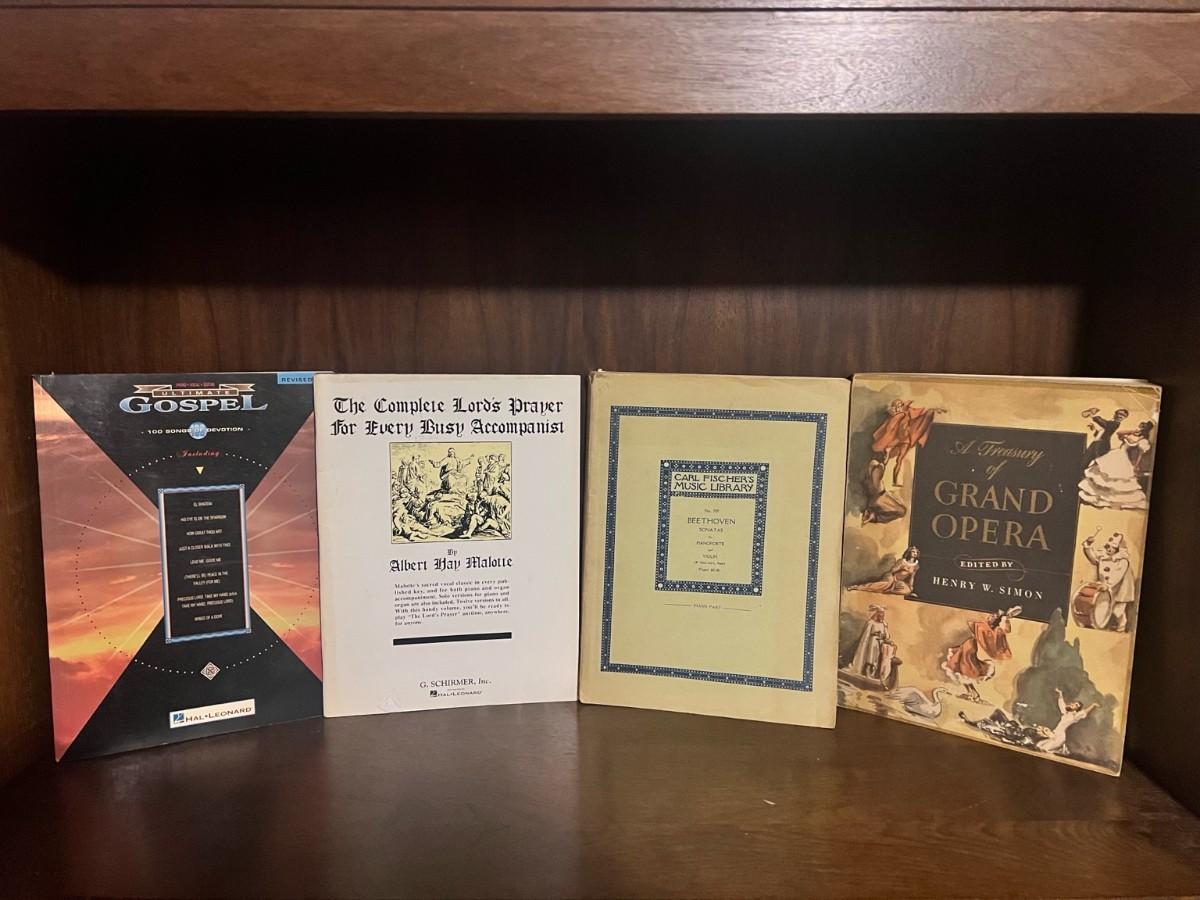 A varied collection of music books and scores for piano and voice, ideal for performers, teachers, or collectors. Includes: