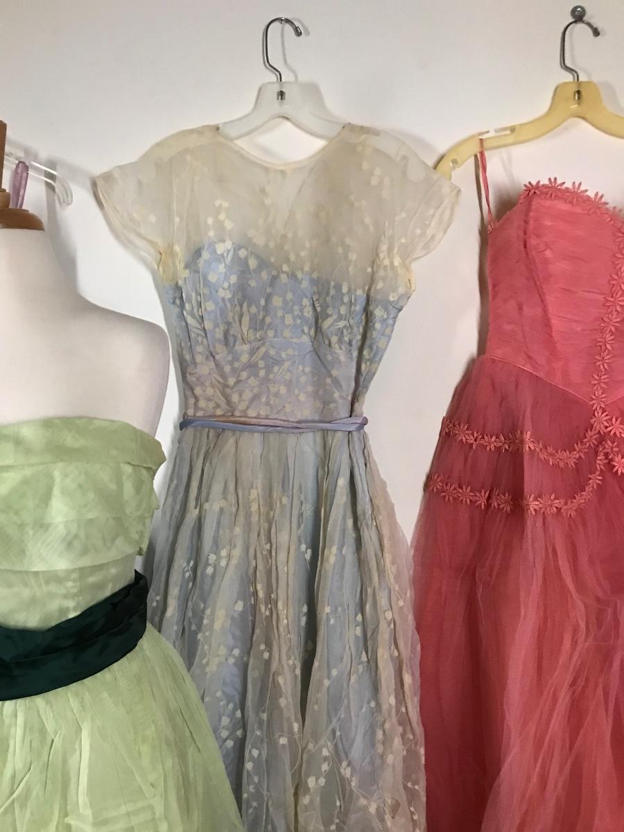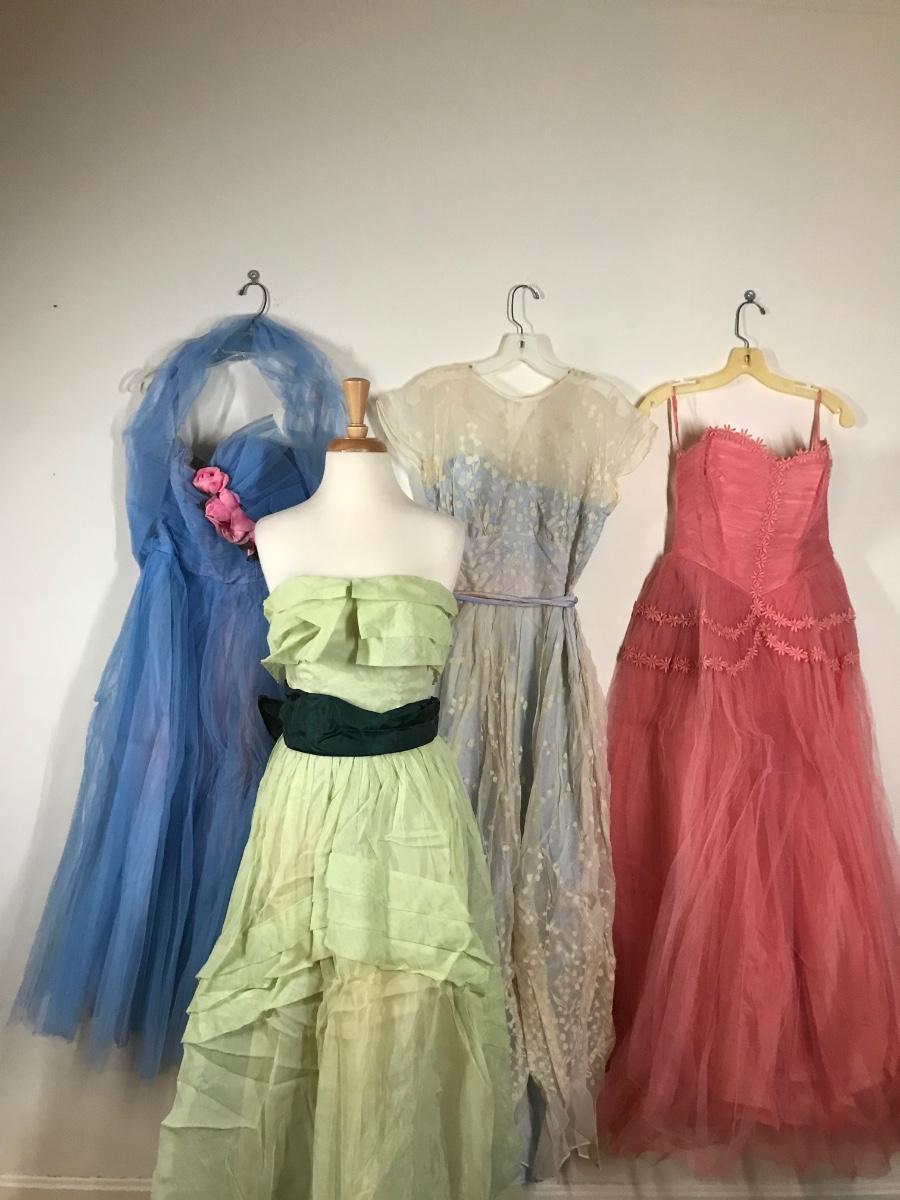 Lot of 4 vintage prom gowns plus accessories 1950s