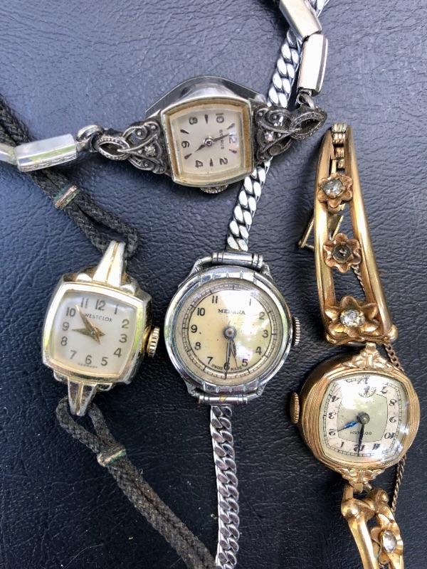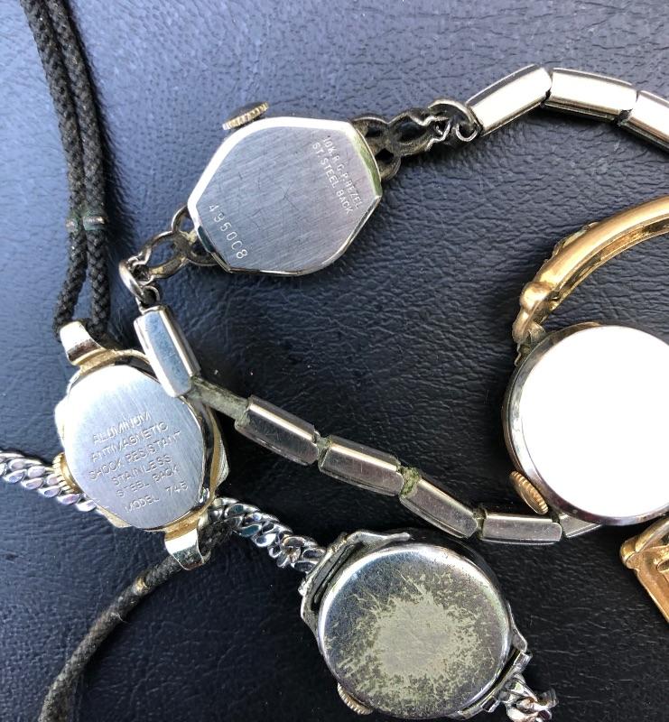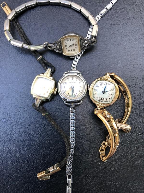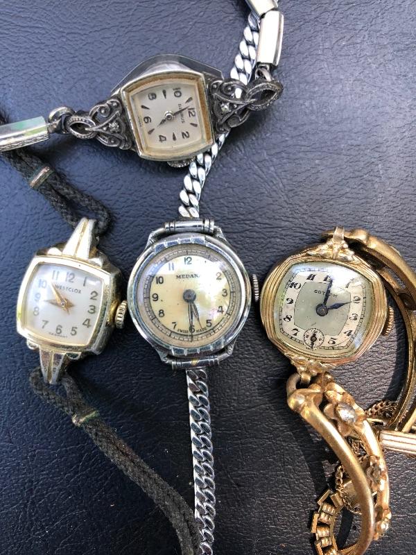 4 Vintage Watches including Westclox, Benrus Medina and Gotham. Use for Parts or Wear All watches Need New Batteries