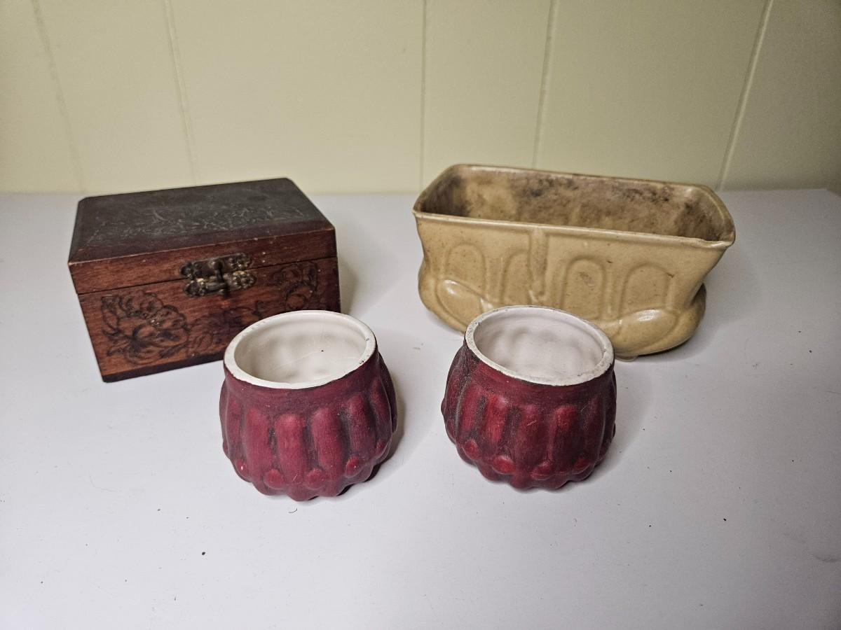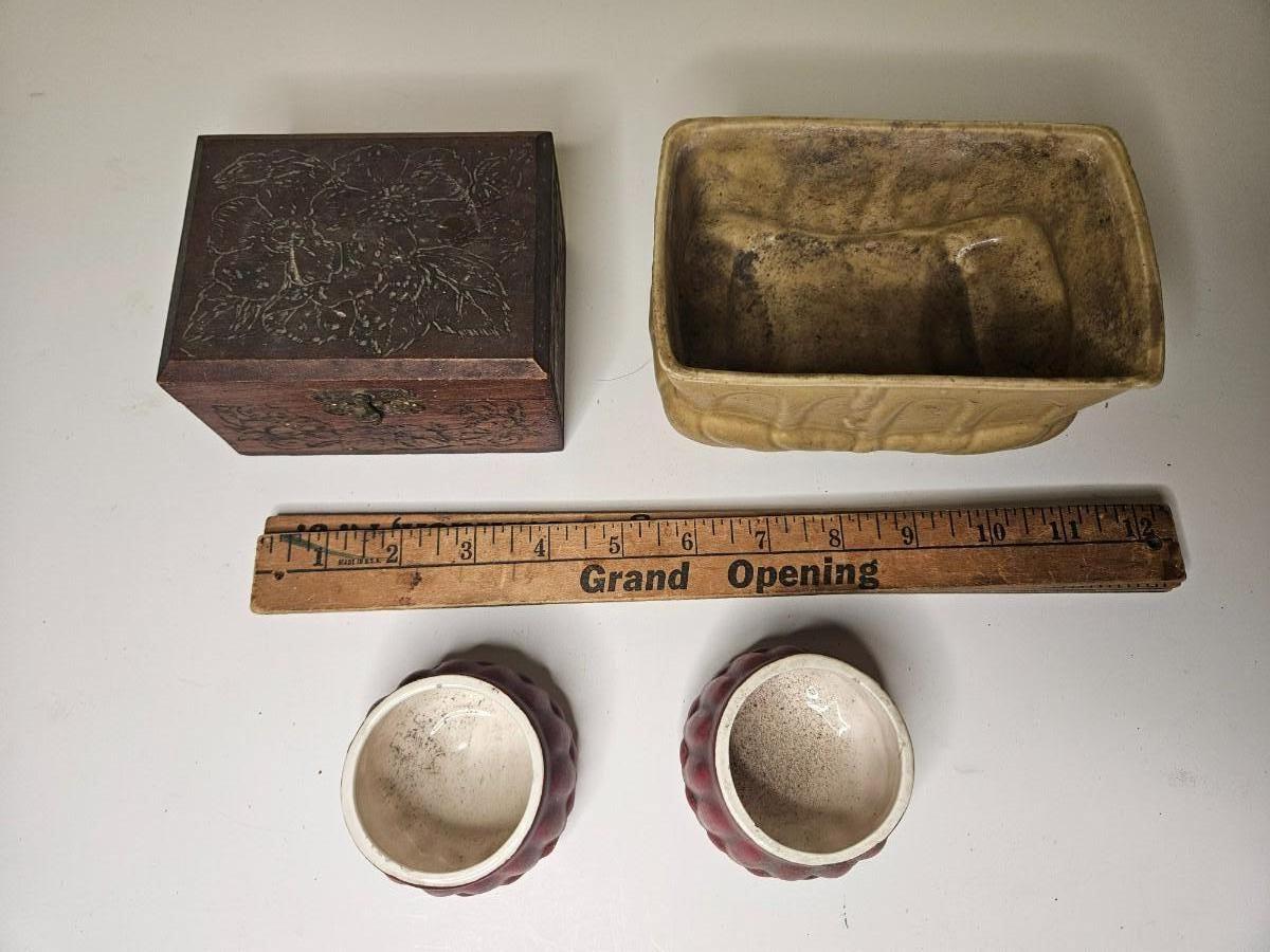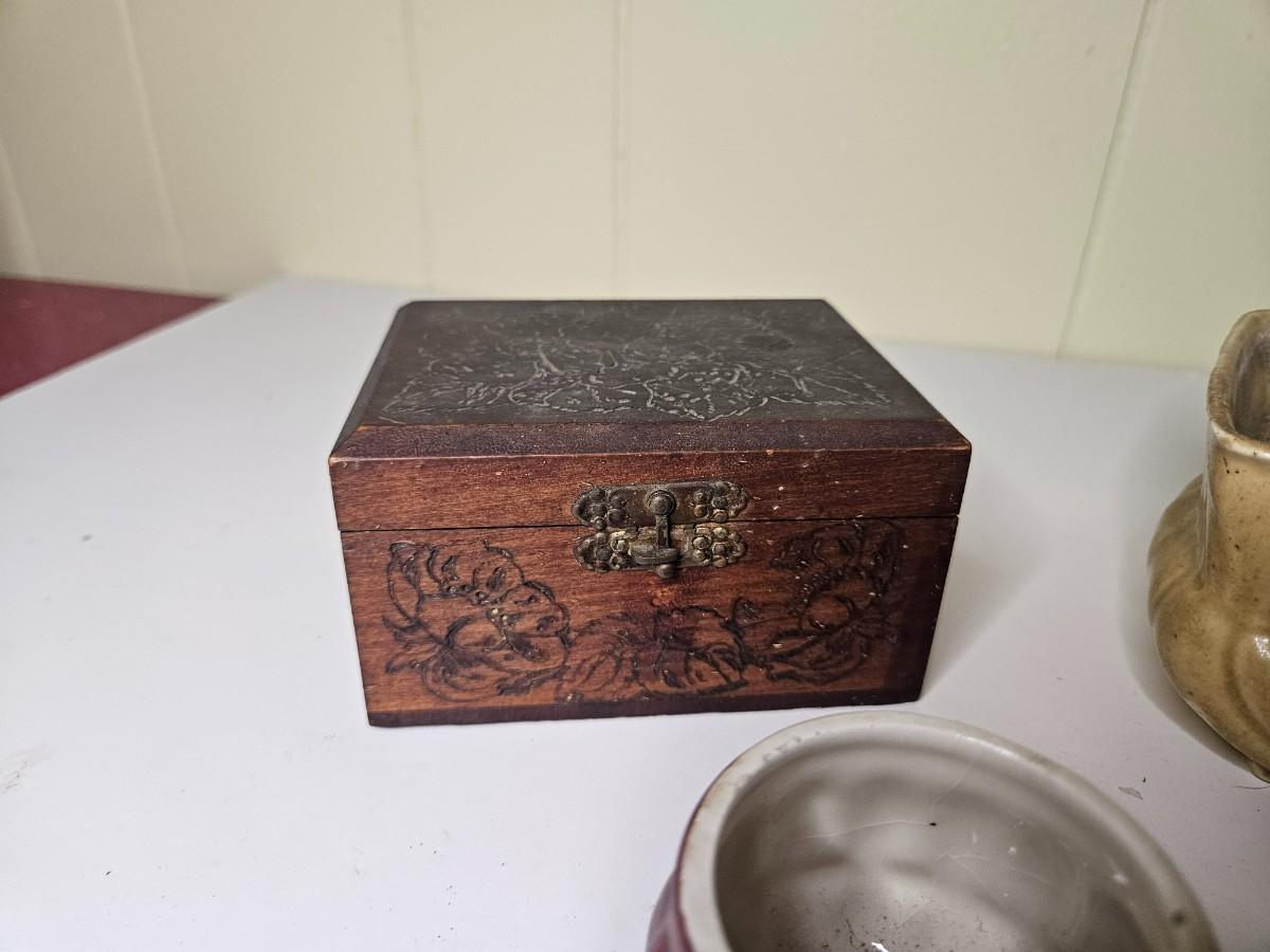 Lot of 4 Vintage/Antique Items Including Hand Carved Wooden Box