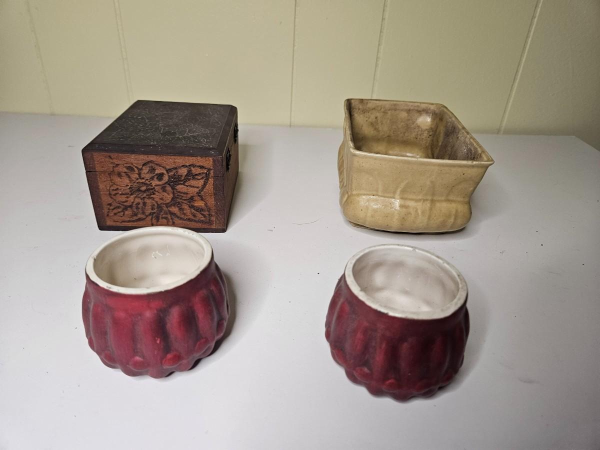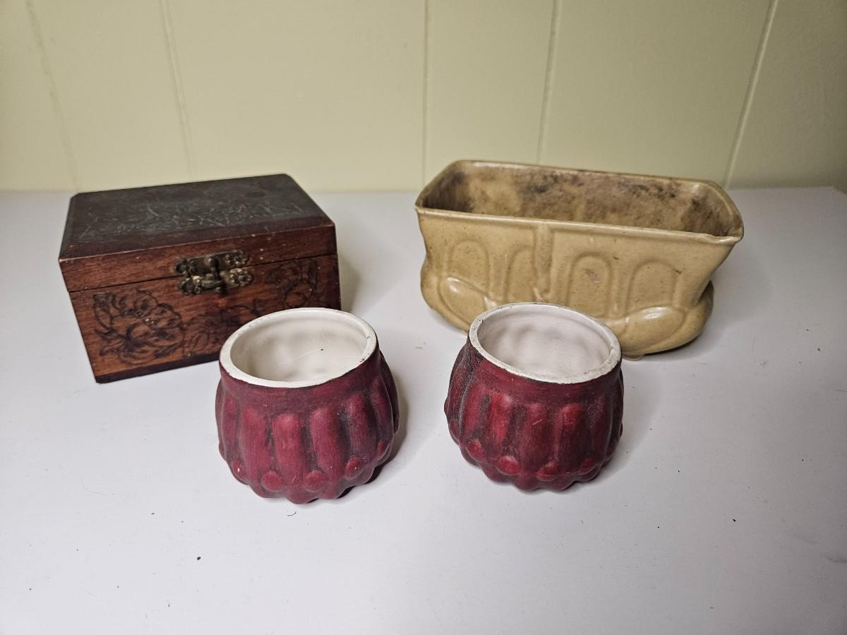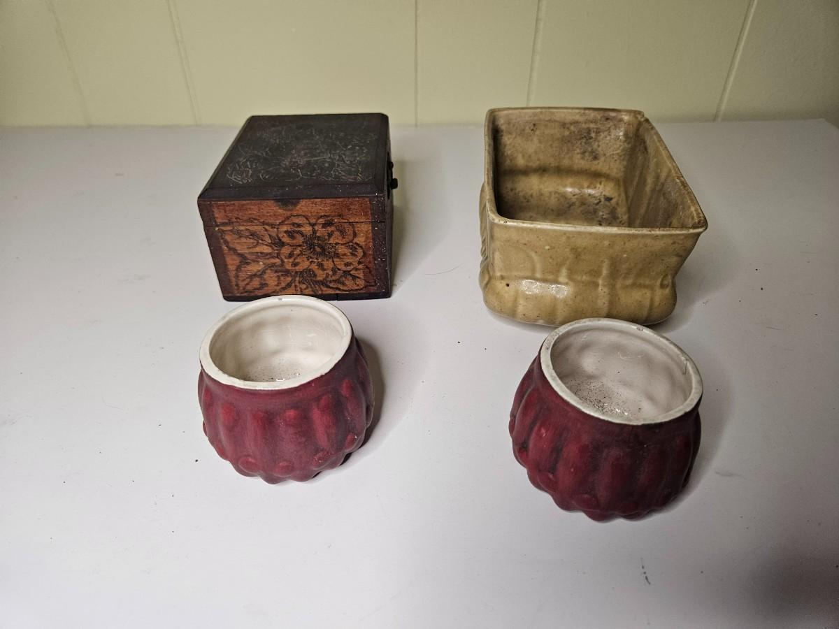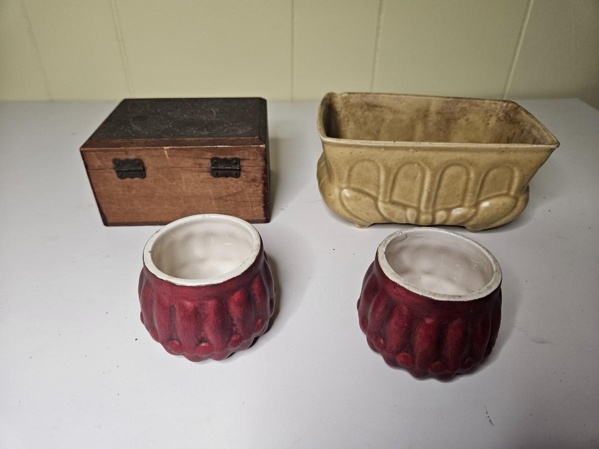 Lot of 4 Vintage/Antique Items Including Hand Carved Wooden Box