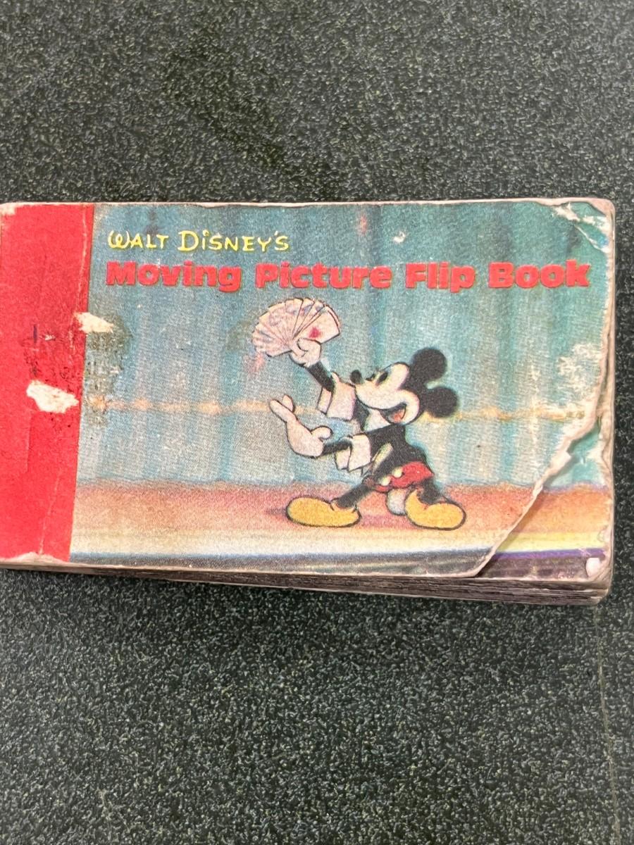 Lot of 4 Walt Disney Mickey Mouse Treasures. Includes Pez Disney Pack, Mickey Mouse Ornament handmade, Moving Picture Flip Book and window cling mickey mouse.