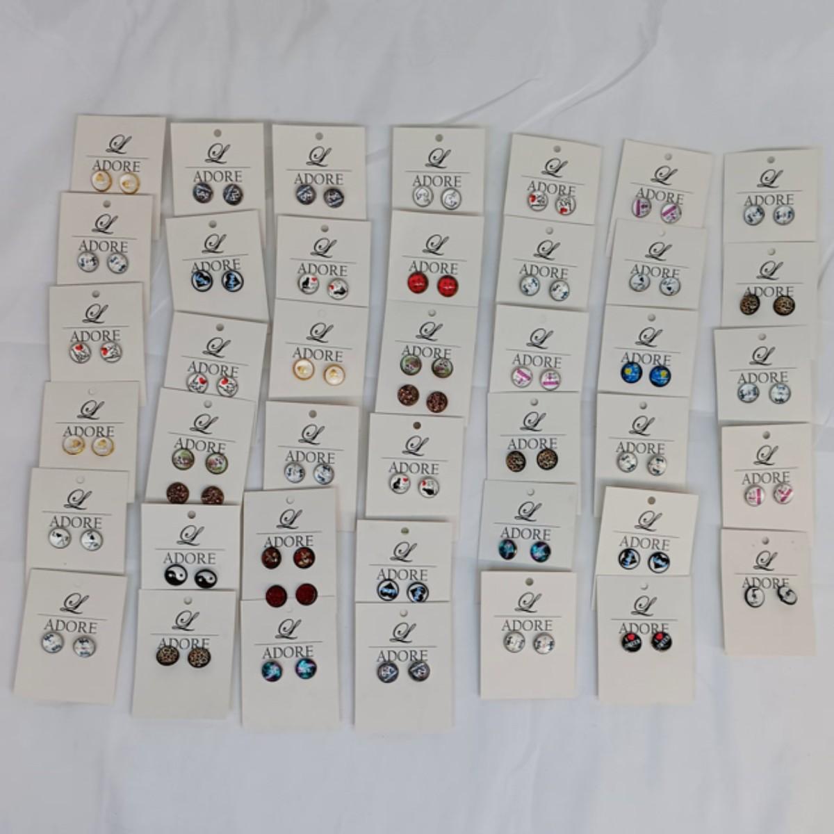 This lot includes 41 brand new earrings for pierced ears in assorted colors and designs.