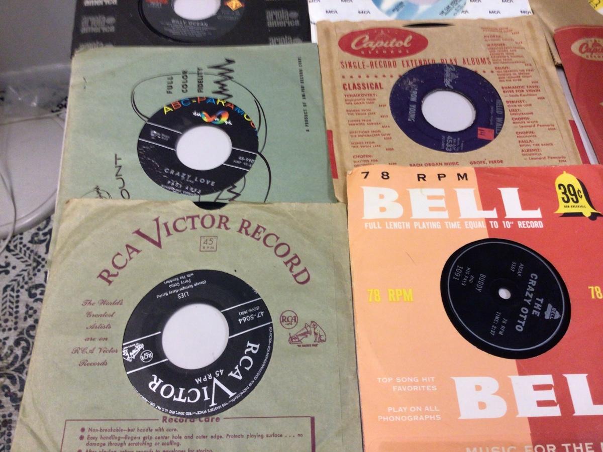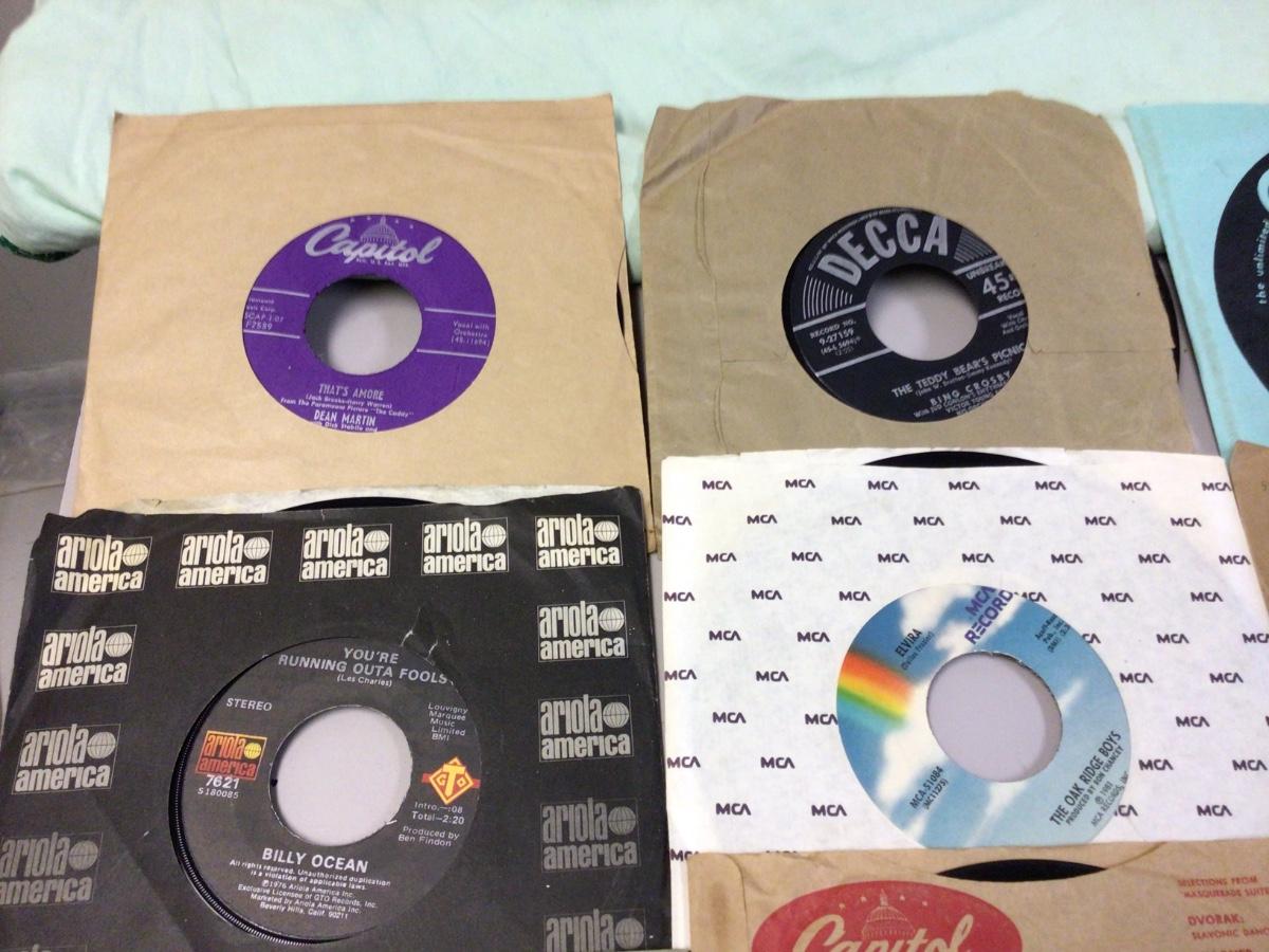 This is a great lot of 45 records you get 12. Various singers.