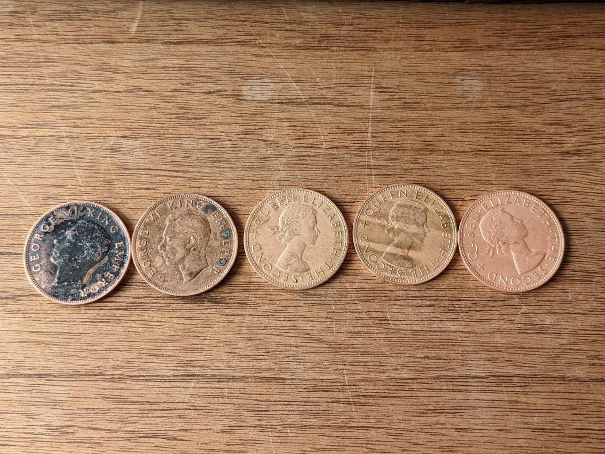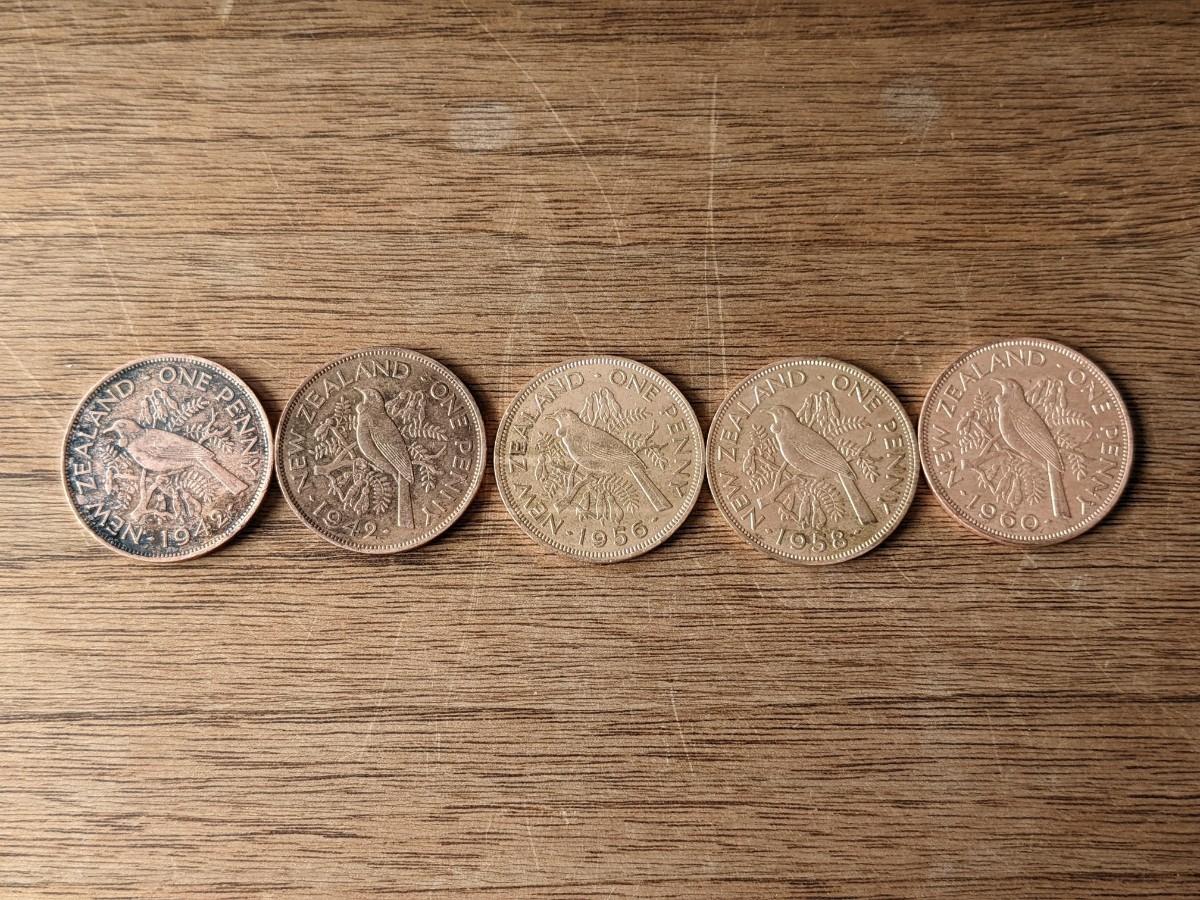 Lot of 5 1942-1960 New Zealand Penny George VI Penny's