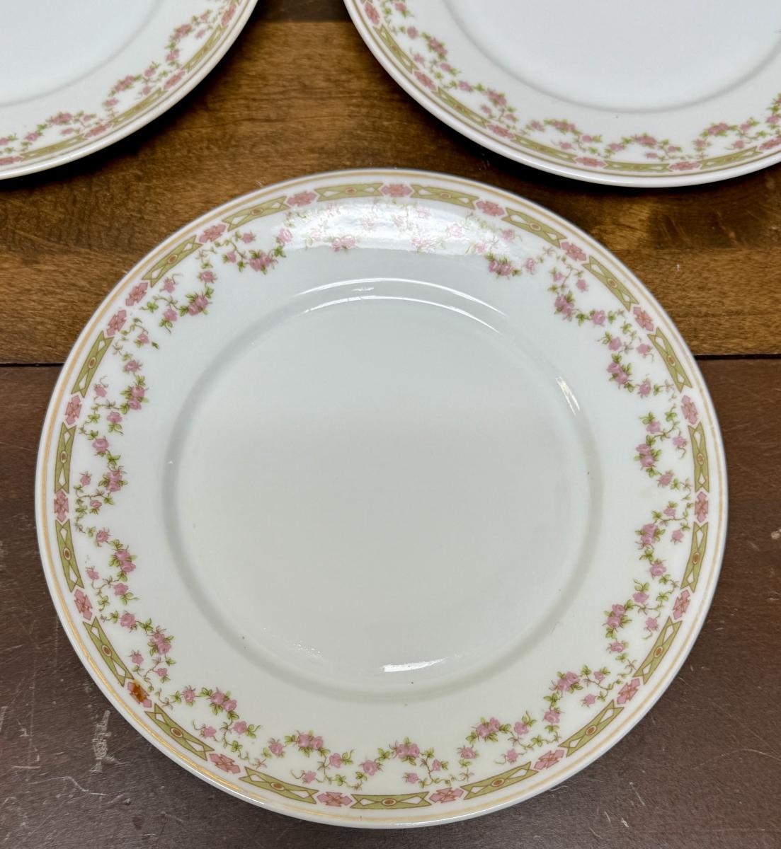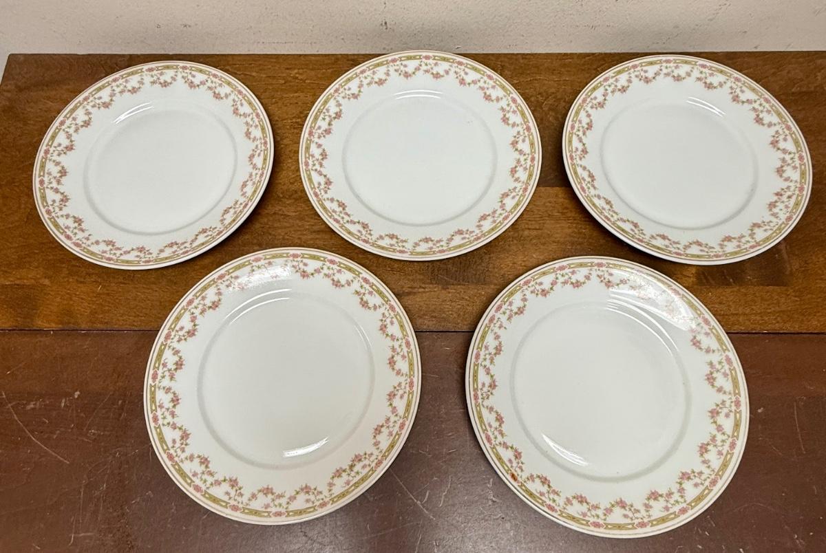 Lot of 5 8"dia Porcelain plates made in Vienna Austria pink flowers green leaves