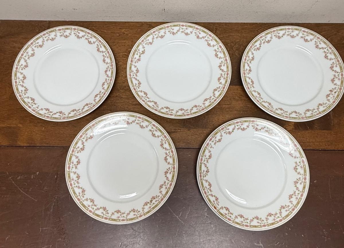 Lot of 5 8"dia Porcelain plates made in Vienna Austria pink flowers green leaves