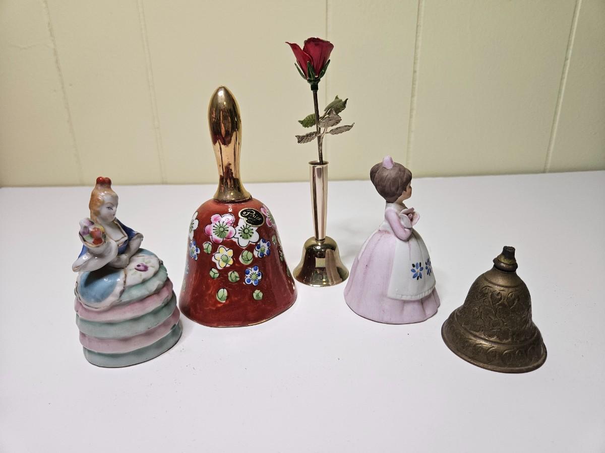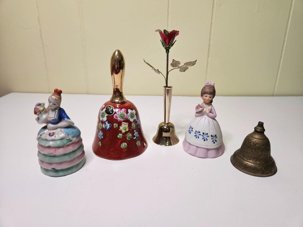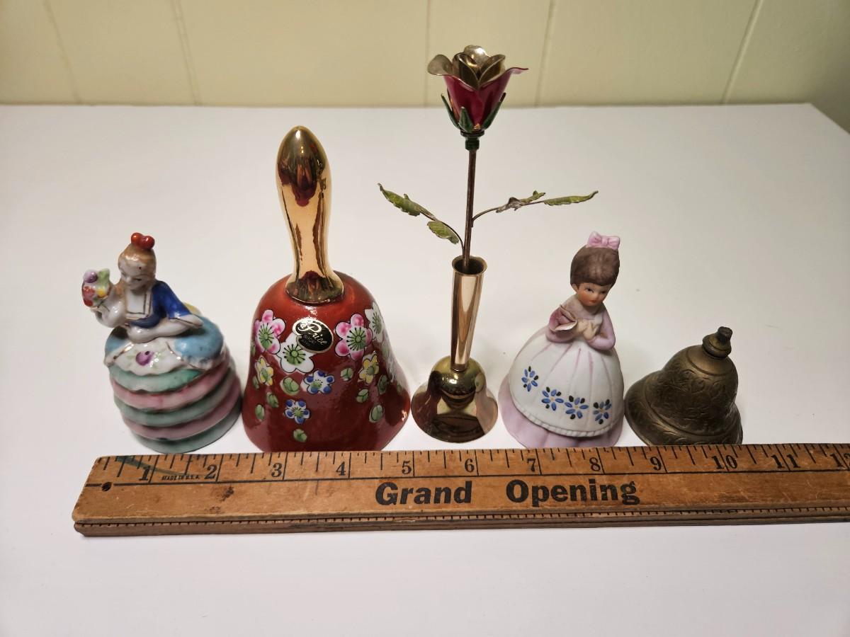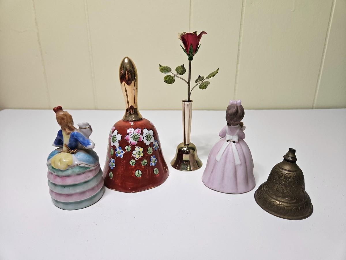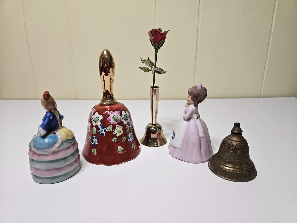 Lot of 5 Antique Bells Including Price Imports and Brass