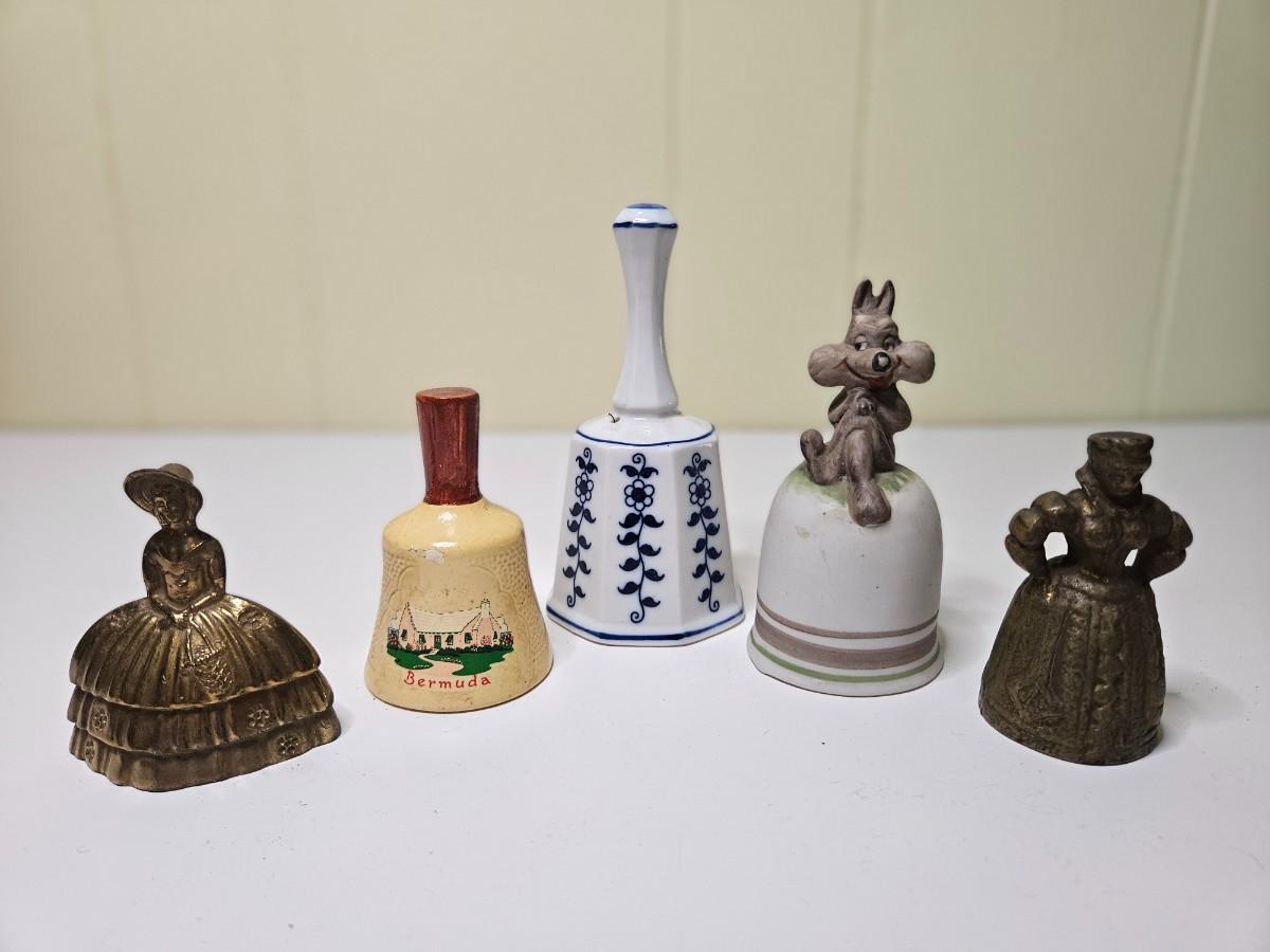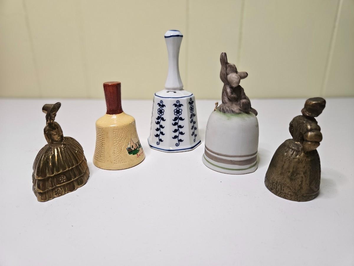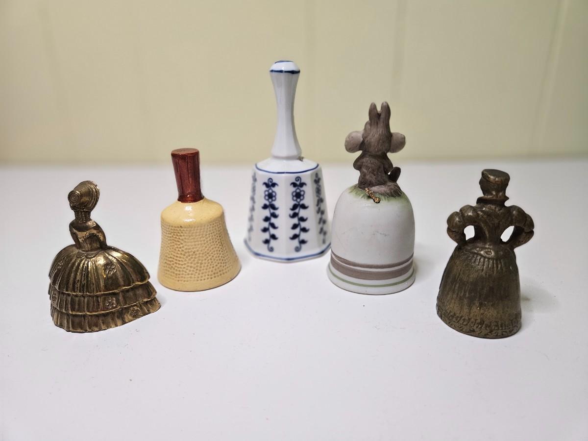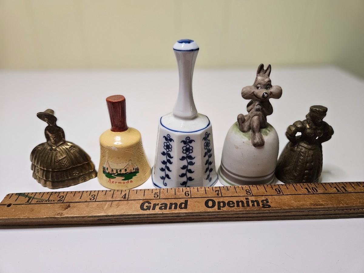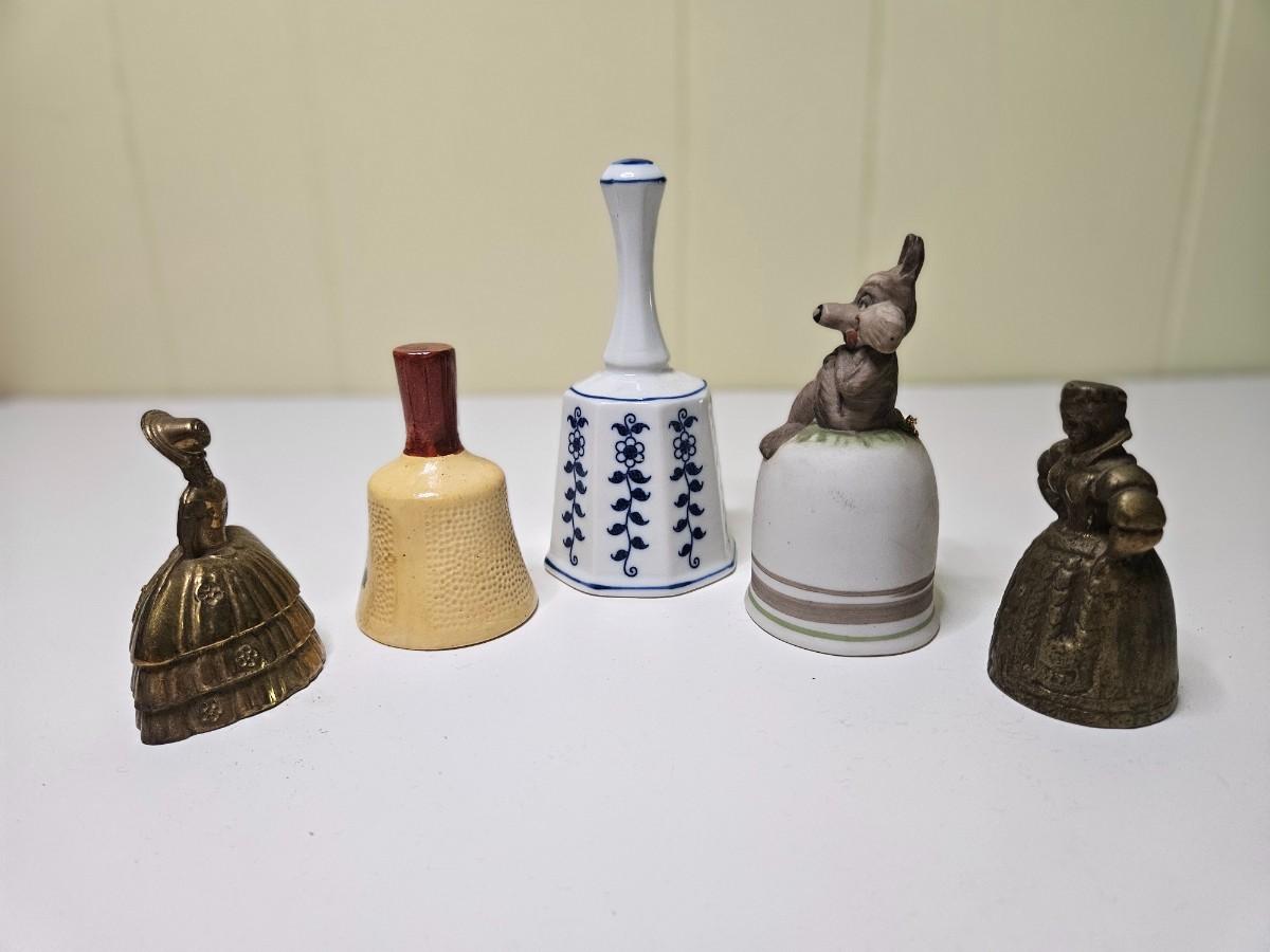 Lot of 5 Antique Bells Including Delft-Style and Price Imports