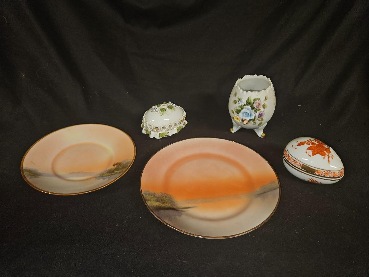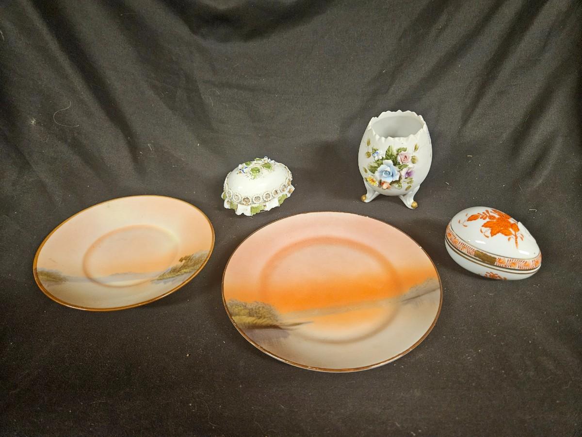 Lot of 5 Antique Items Including Lefton Egg and Trinket Boxes