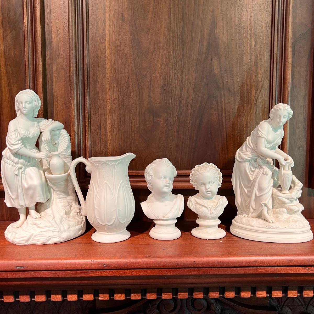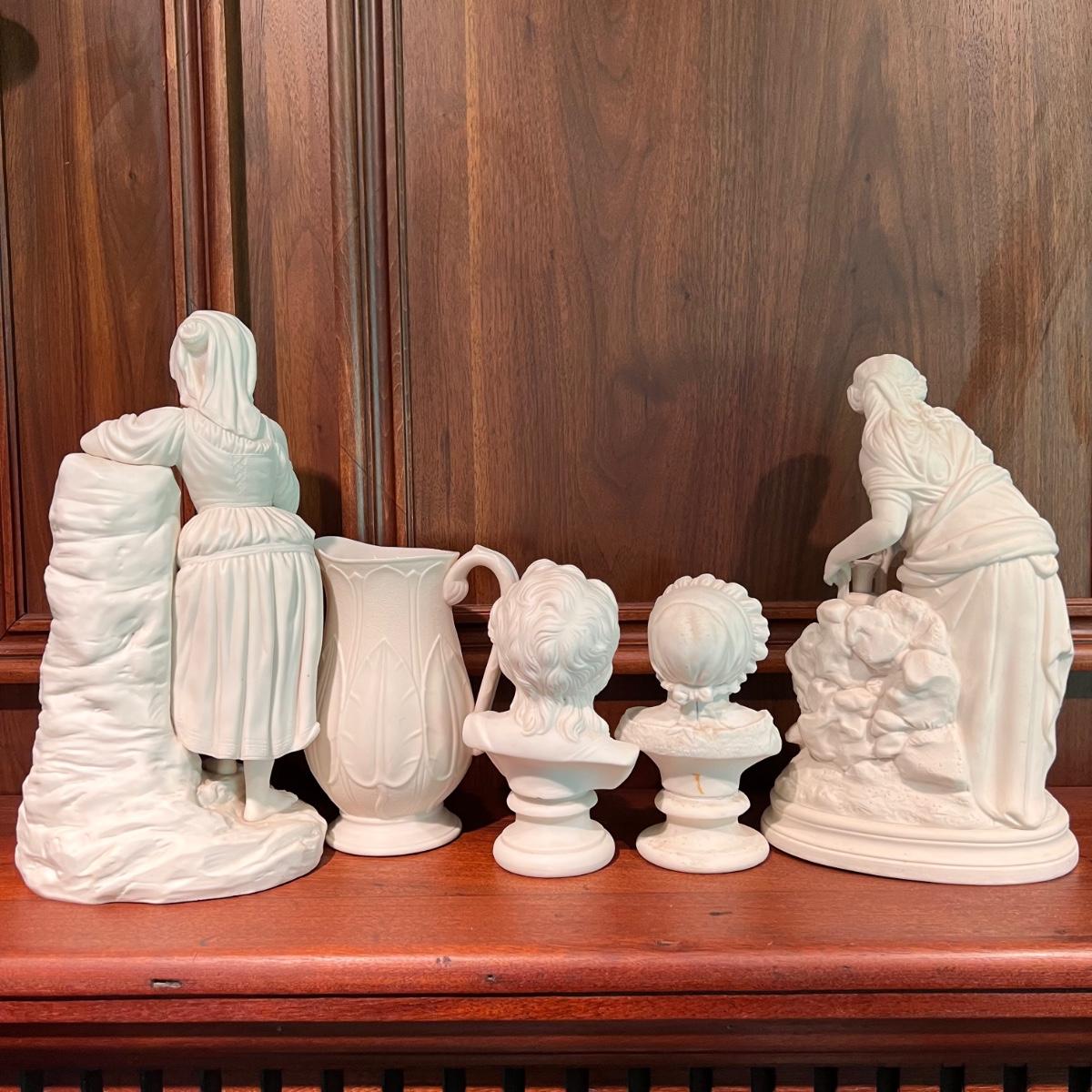Lot of 5 including 2 full figures, 2 busts and 1 pitcher.