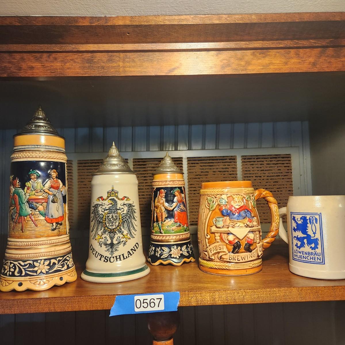 Lot of 5 Beer Steins Mugs 2 are Musical not tested